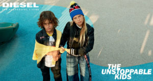 Il caratteristico logo rosso DIESEL si ritrova non solo nella collezione uomo-donna, ma anche nella collezione Kid dove il fratellino imita lo spirito urban del fratello maggiore e in questo caso, la personalità ribelle del cantante, Fedez.