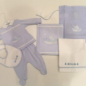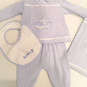 LE BEBE’ Copertina e copriface azzurro con barchetta corredino nascita neonato