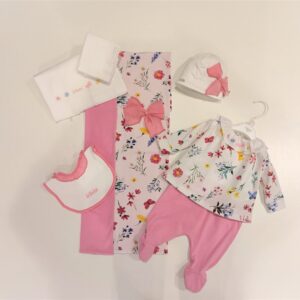 LE BEBE’ Coordinato maglia rosa corredino nascita neonata