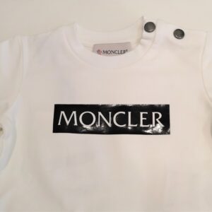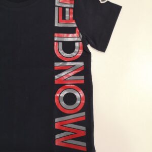 T-shirt manica corta con maxi lettering Moncler in tonalità bicolor sul davanti. Il modello è realizzato in jersey stretch morbido