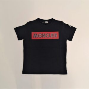 MONCLER T-shirt blu manica corta stampa laterale bambino