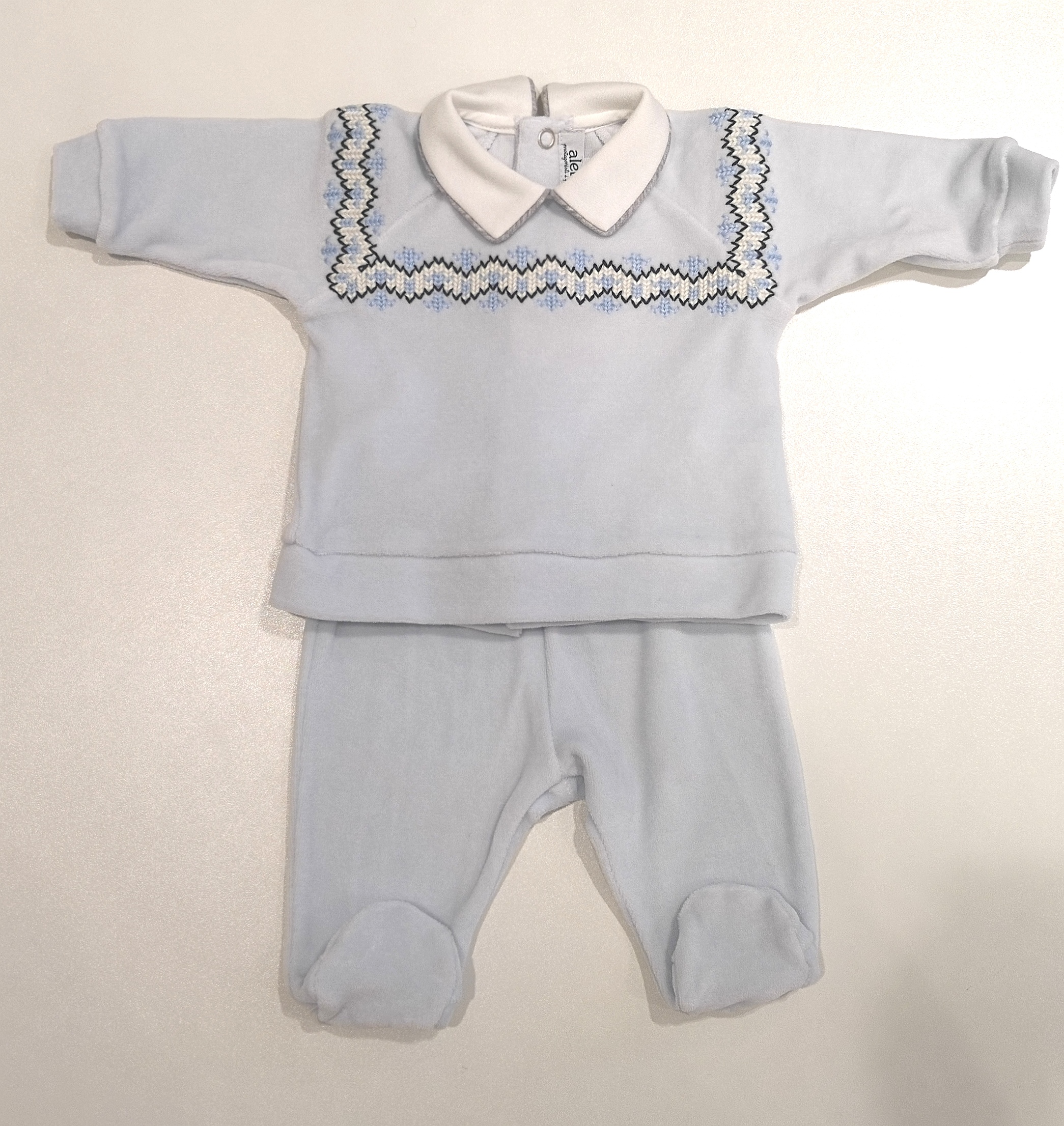 ALETTA Completo nascita ciniglia azzurro ricamo maglia corredino neonato