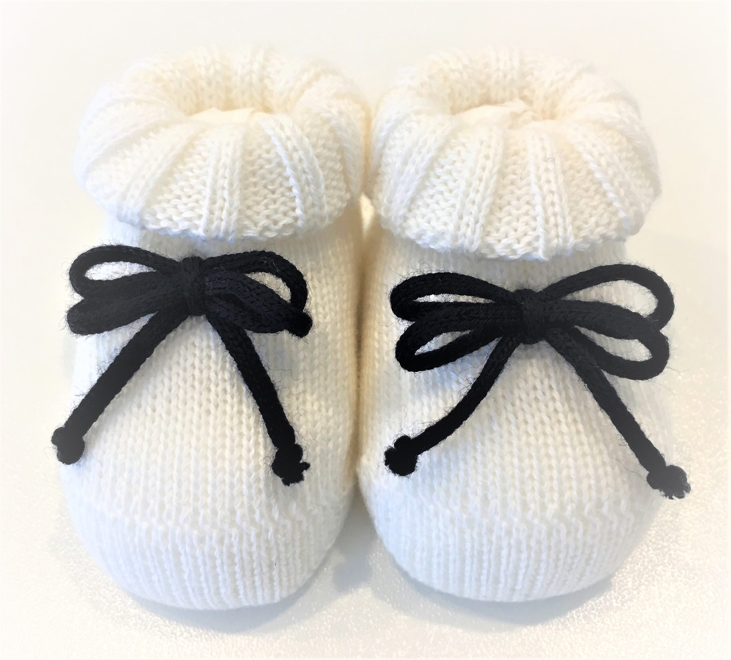 Scarpette ALETTA in lana colore panna con fiocchetto doppio blu.