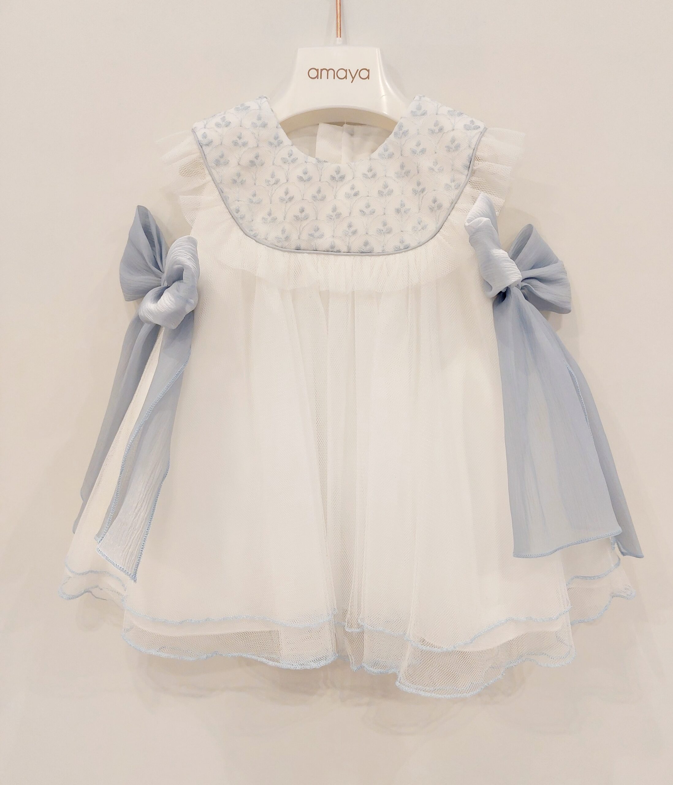 AMAYA Vestito battesimo/cerimonia bambina bianco e azzurro