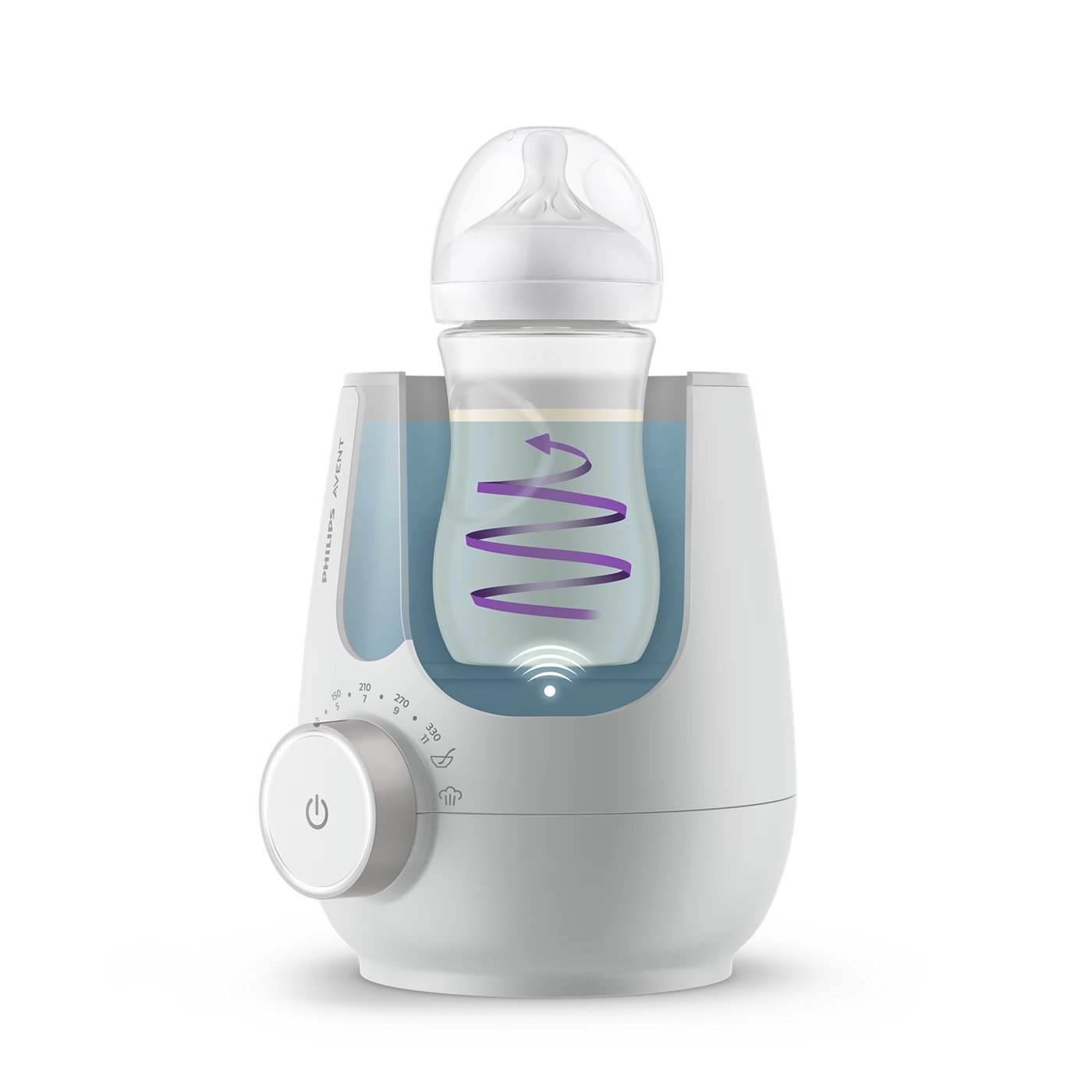 Il metodo più affidabile per riscaldare e sterilizzare ti permette di essere sempre un passo avanti. Il sistema di riscaldamento a bagnomaria di qualità ospedaliera preserva meglio le proteine del latte, mentre il sensore intelligente impedisce il surriscaldamento. E quando è ora di pulire, il vapore naturale rimuove il 99,9% dei germi.