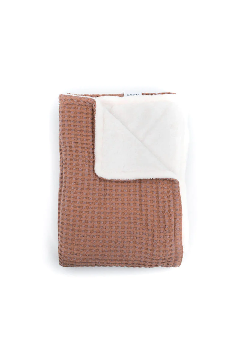 BAMBOOM Coperta Lettino 140×100 – Goffrato, in bambù organico + spugna peluche – Rosa Antico Scuro