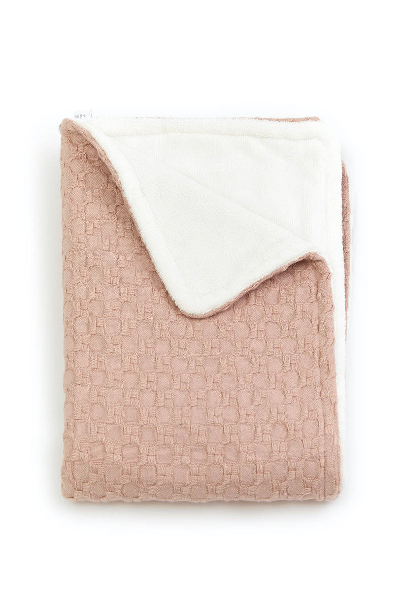 BAMBOOM Coperta culla100x75 – Honey, in bambù organico + spugna peluche – Nude pink