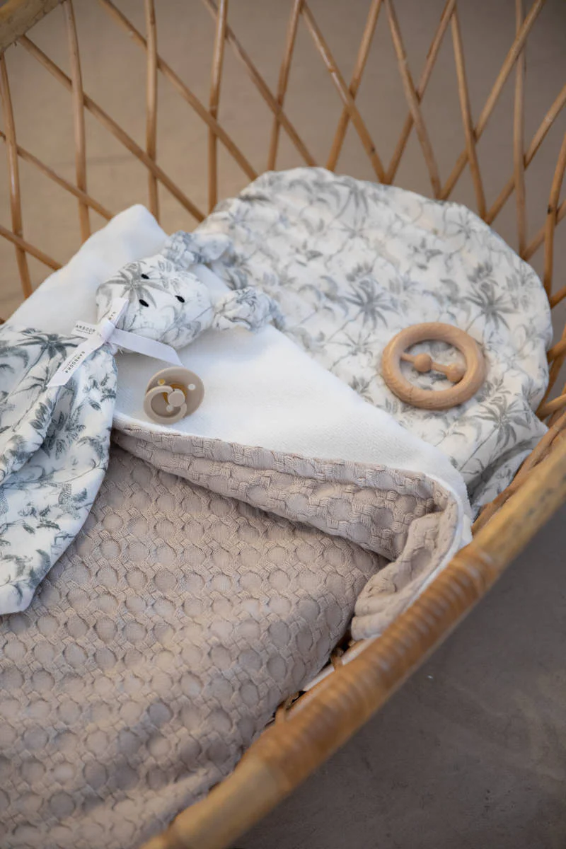 - Il tessuto della collezione Honey è una soffice trama a nido d’ape, ideale per le culle più eleganti