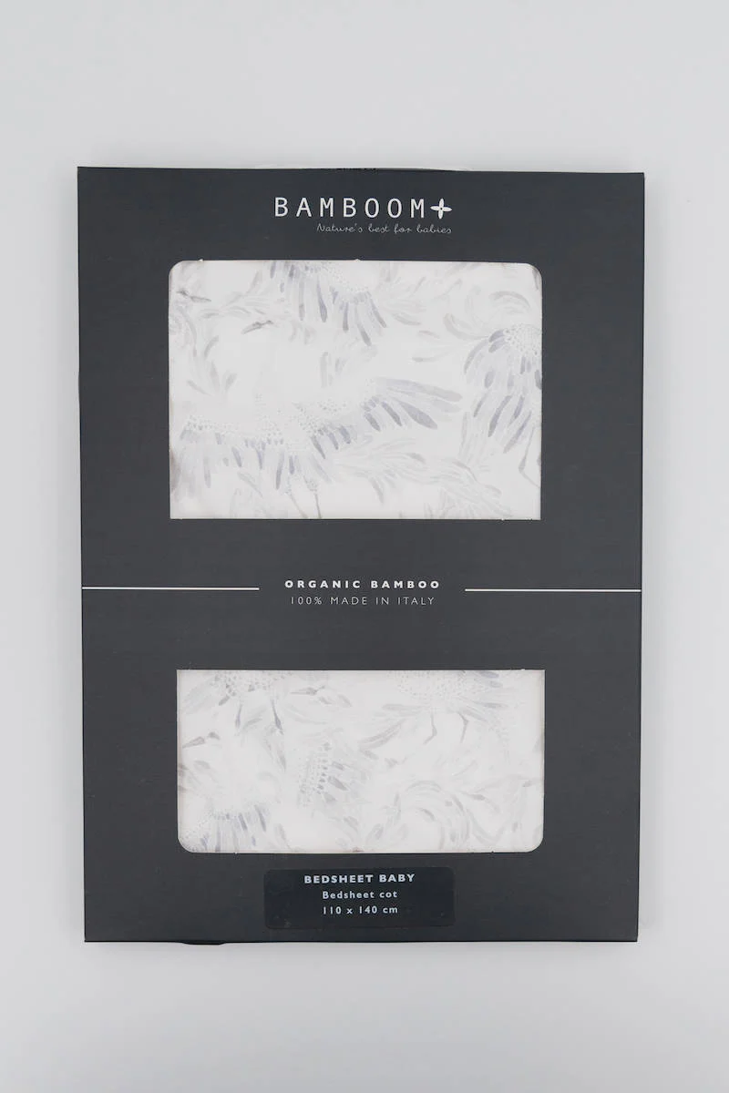 BAMBOOM Lenzuolo per lettino 110x140cm, con Federa stampa Swans