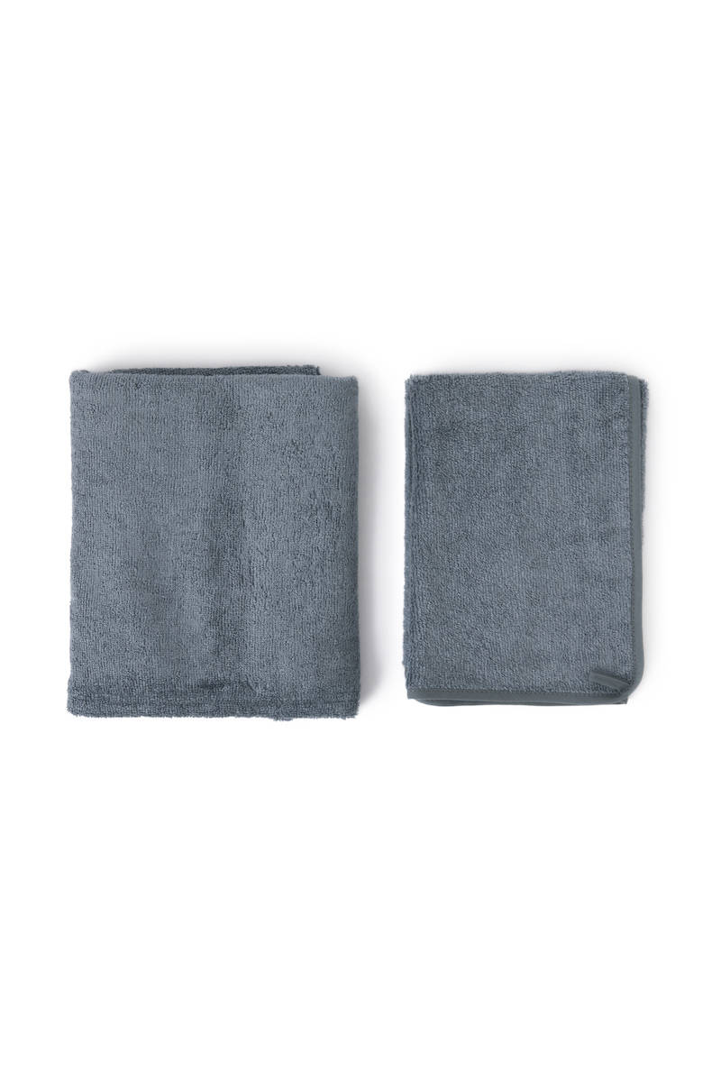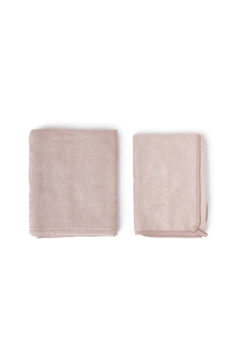 Set di due asciugamani realizzati in soffice spugna di bambù organico perfetti per le pelli più sensibili e delicate.