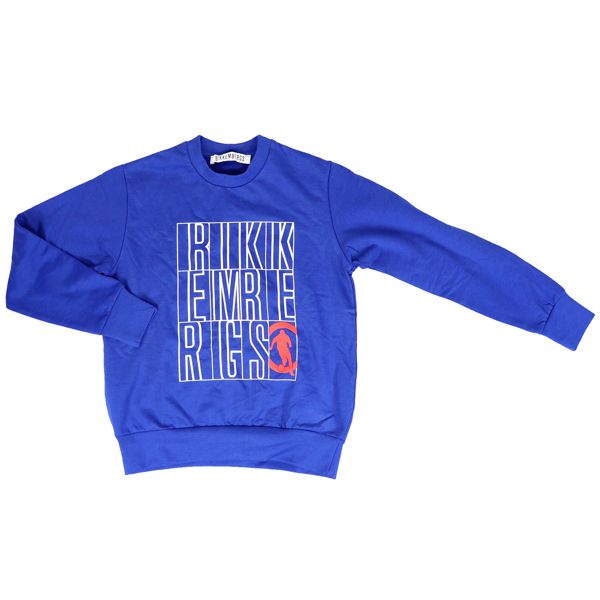 Felpa girocollo bluette con stampa quadrata con scritta Bikkembergs in contrasto bianca davanti