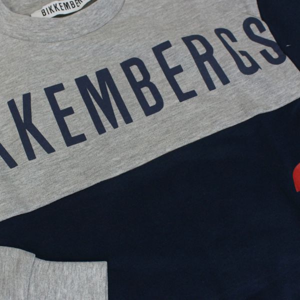 BIKKEMBERGS Felpa girocollo grigio-blu bambino