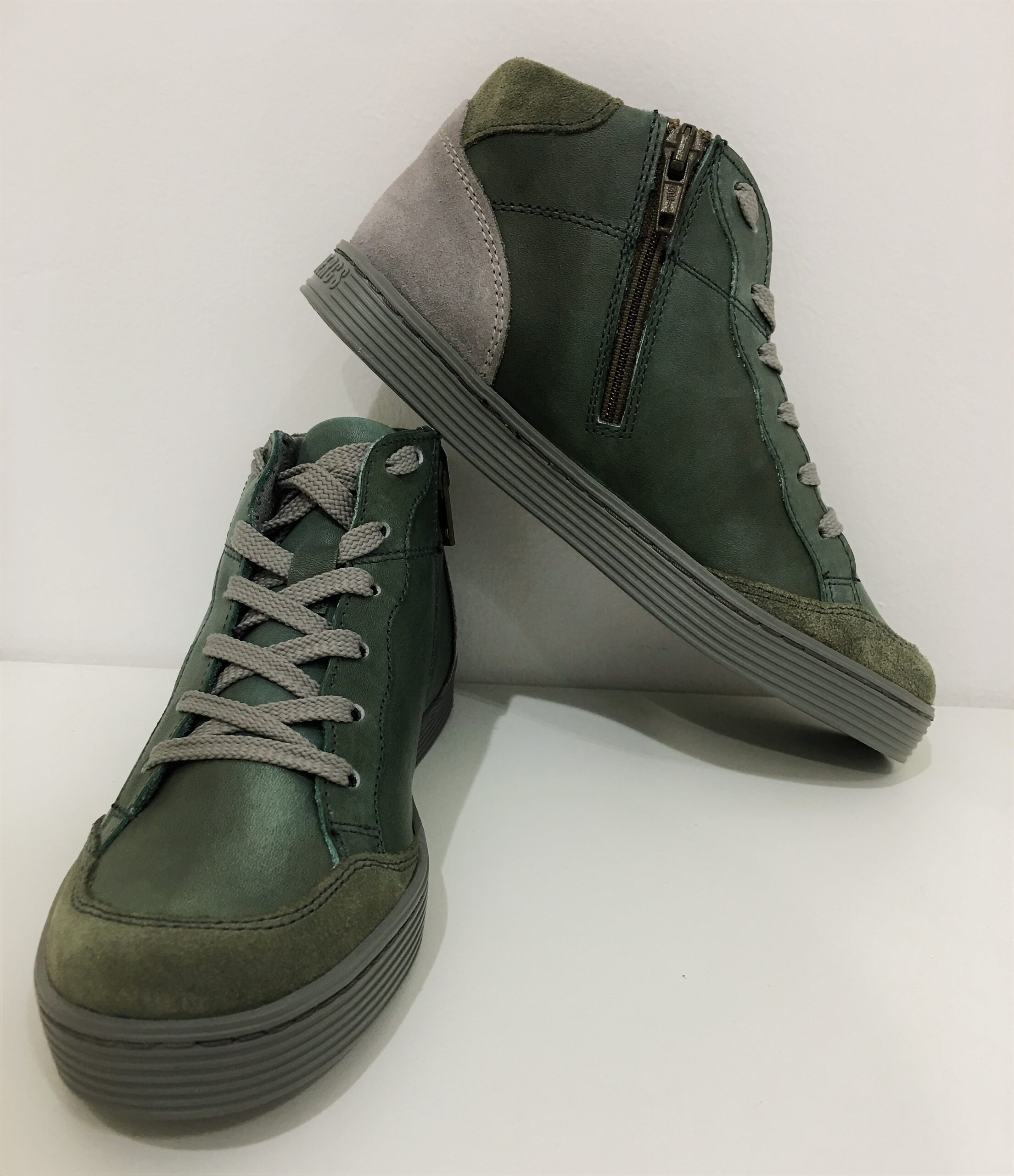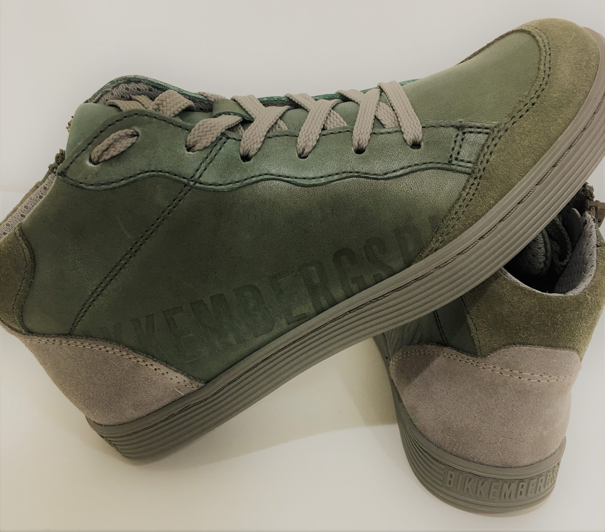 Sneakers Stivaletto BIKKEMBERGS in pelle colore verde, suola in gomma. Chiusura con zip e lacci.