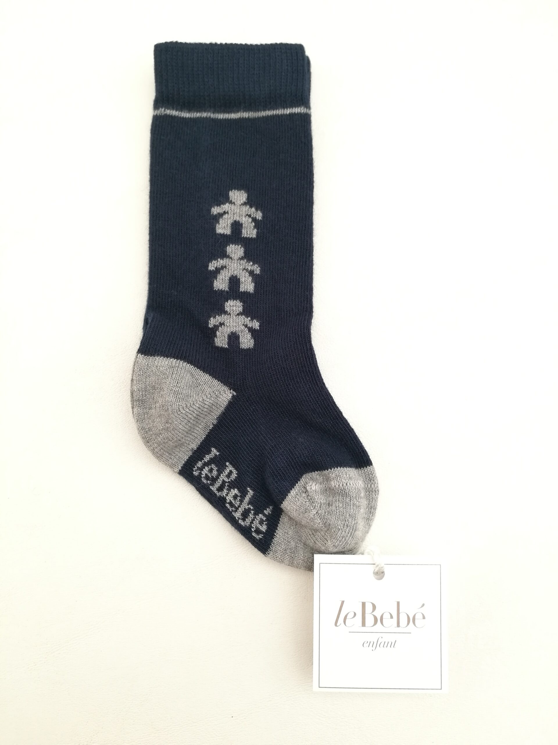 Calzettoni in blu con omini “le Bebé” colore grigio e logo sotto