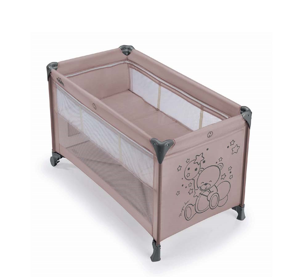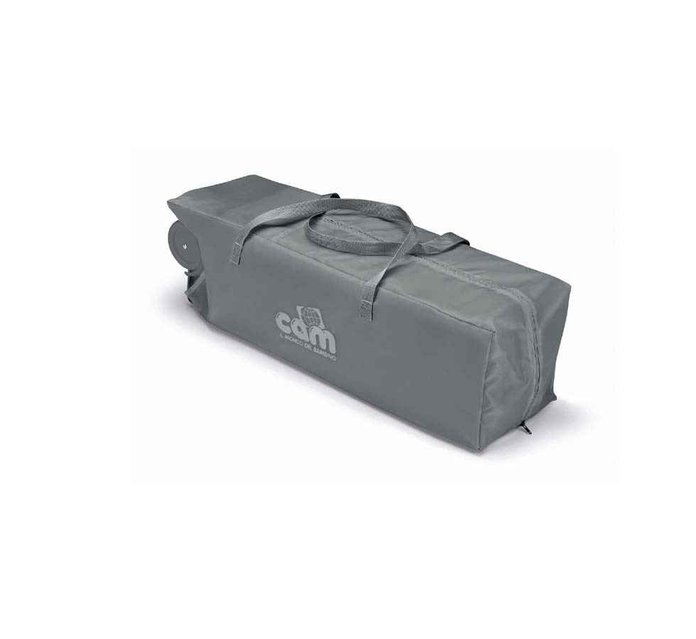 con kit doppia altezza, ampia tasca portaoggetti, giocose serigrafie, doppia altezza, materassino, borsa da viaggio. Chiusura compatta.