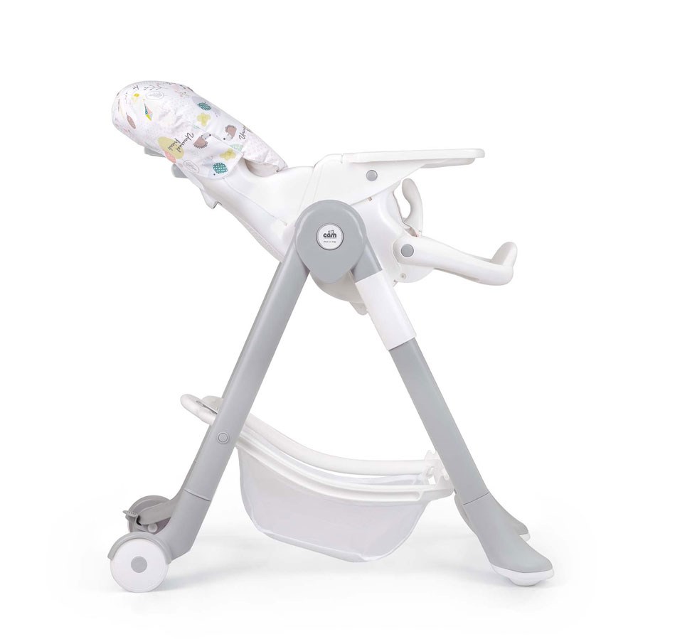 Presenta: due tavolette regolabili e removibili, più una tavoletta di sicurezza, dei vani portaposate, una morbida imbottitura, cinghia a 5 punti e due ruote posteriori per una maggiore stabilità ed un comodo e capiente cestino