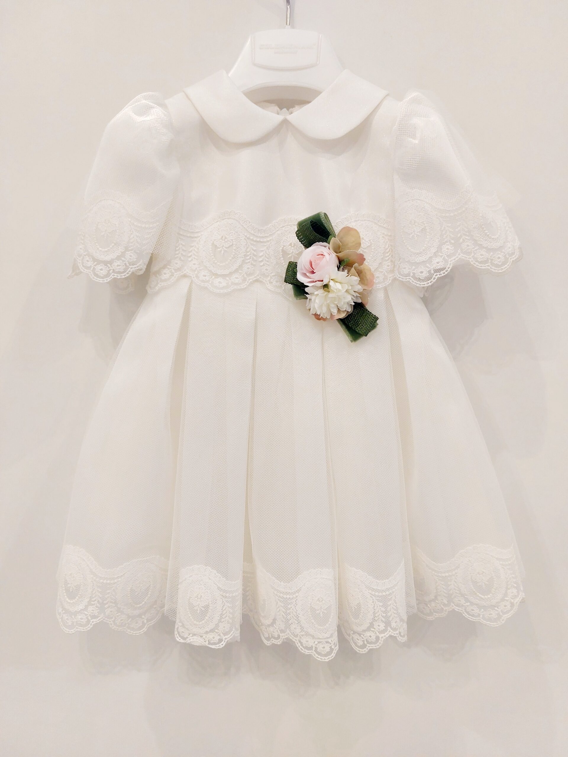 AMAYA Vestito battesimo/cerimonia bambina bianco e rosa