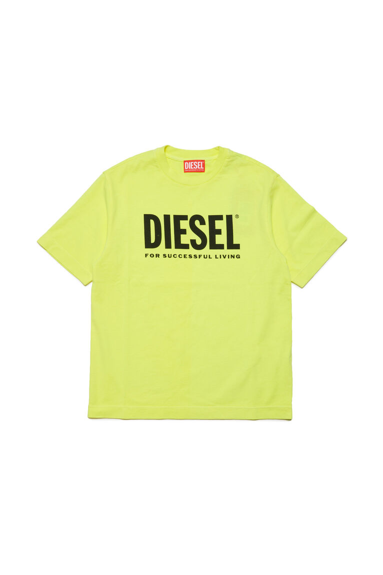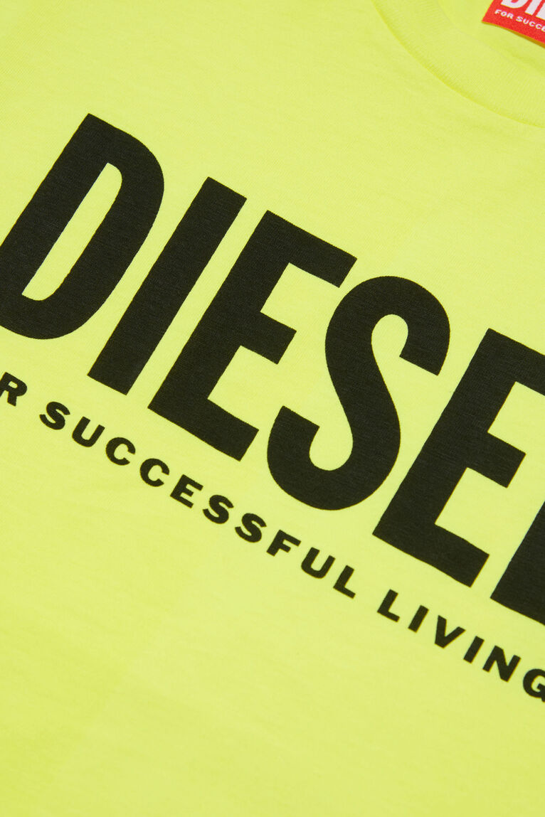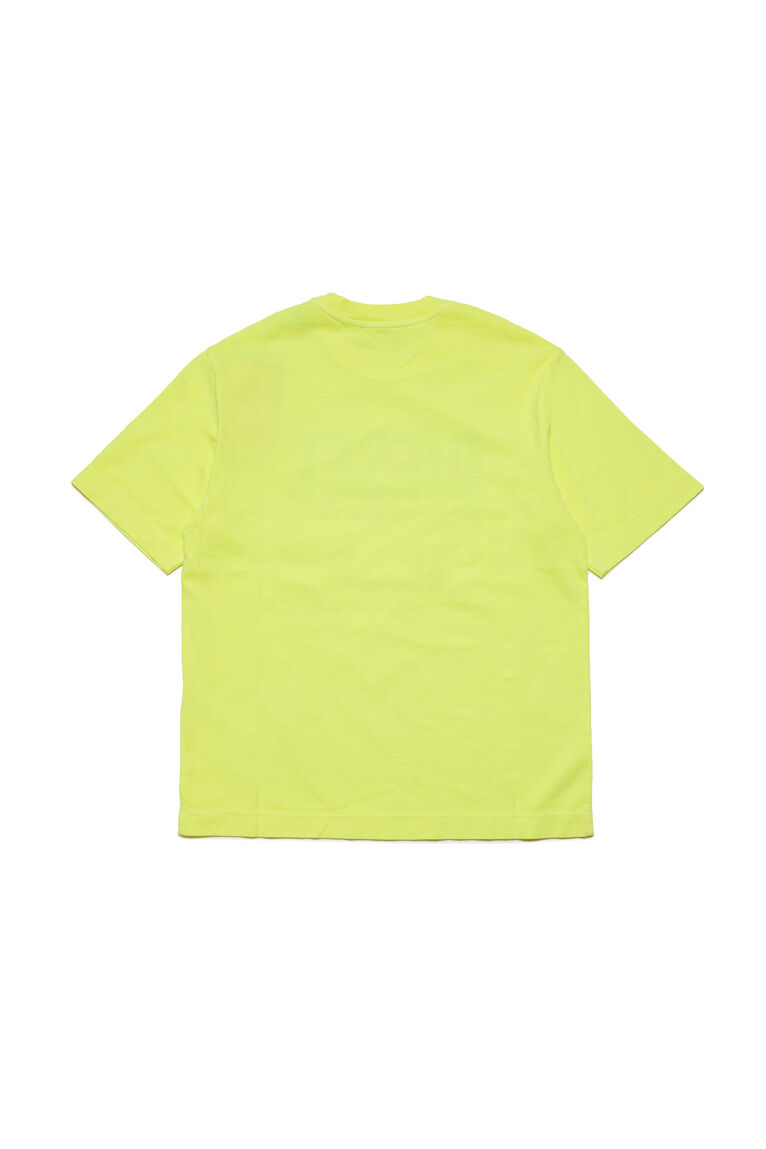 T-shirt girocollo manica corta giallo effetto lavato in morbido jersey di cotone con stampa logo DIESEL in contrasto nero