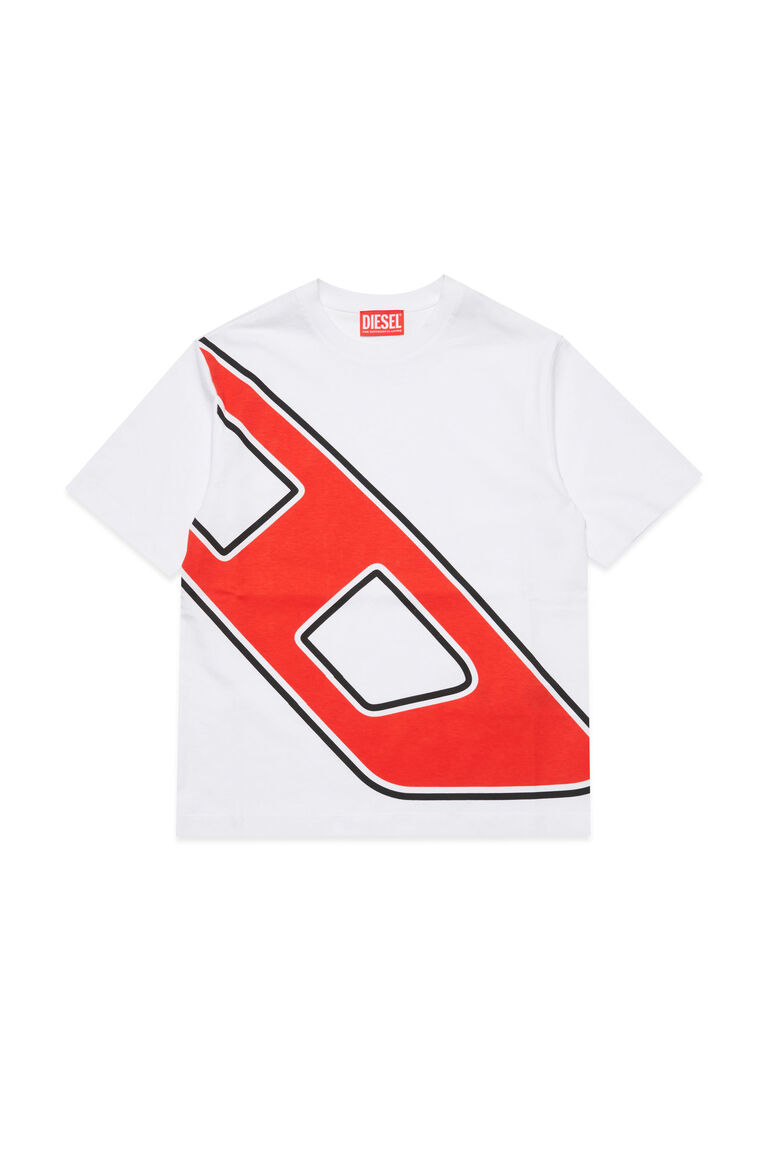 T-shirt da bambino in morbido jersey di cotone. Modello dal fit oversize con mega logo D stampato in diagonale sul davanti.