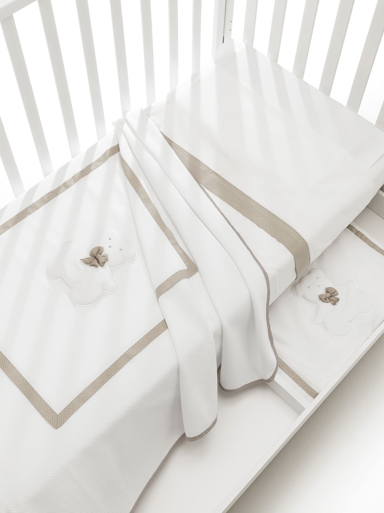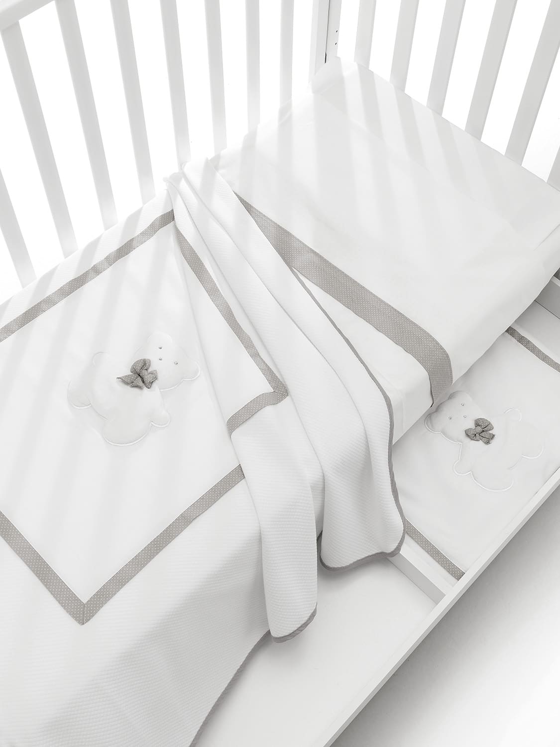 Ideale abbinato al lettino Collezione Dudù con fiocco bianco e grigio oppure bianco e tortora