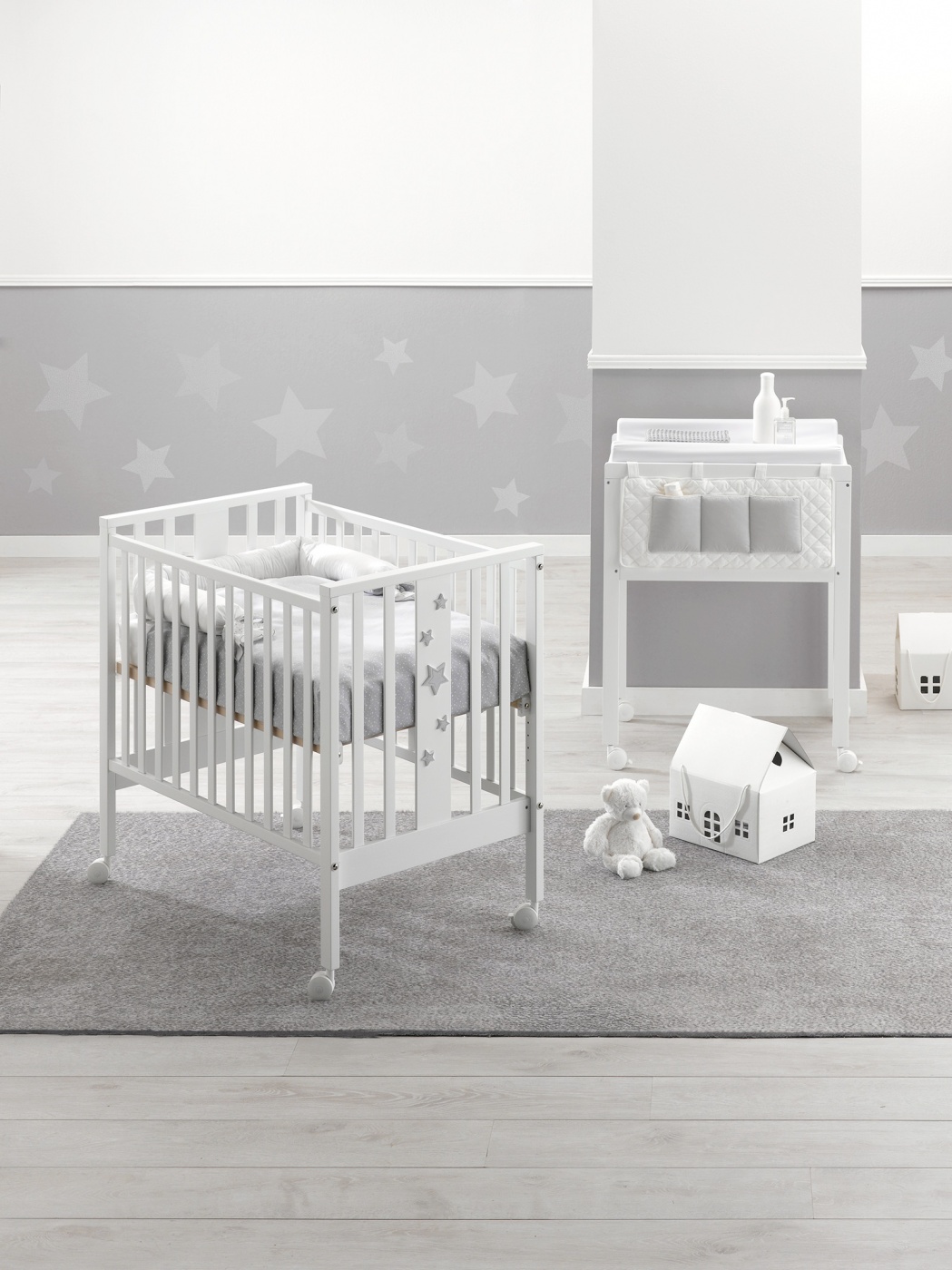 Il mobile è completo di un morbido fasciatoio in PVC e 4 ruote piroettanti di cui due con freno.