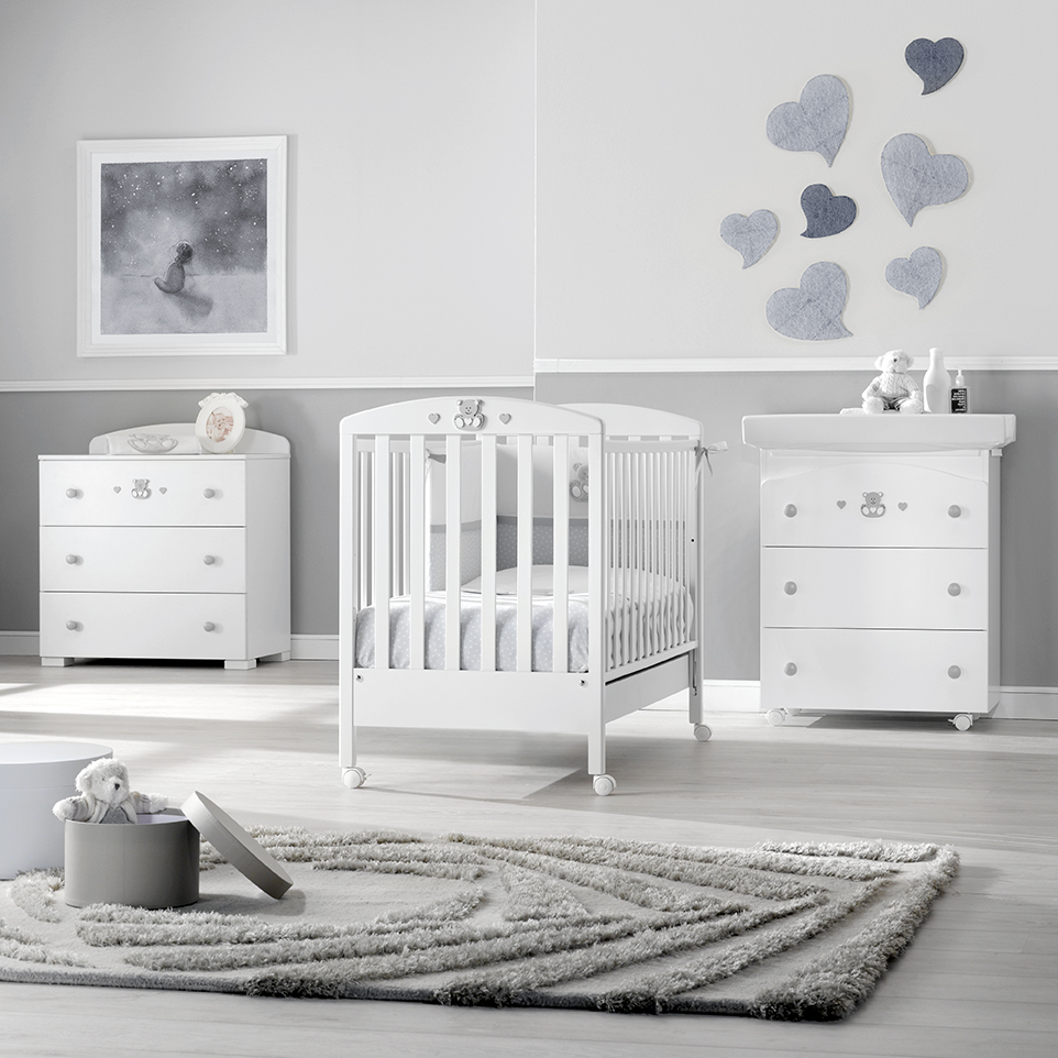 DISPONIBILI nella stessa collezione: comò e armadio, copertina in pile ricamata, copertina in piquet, lenzuolino, velo.