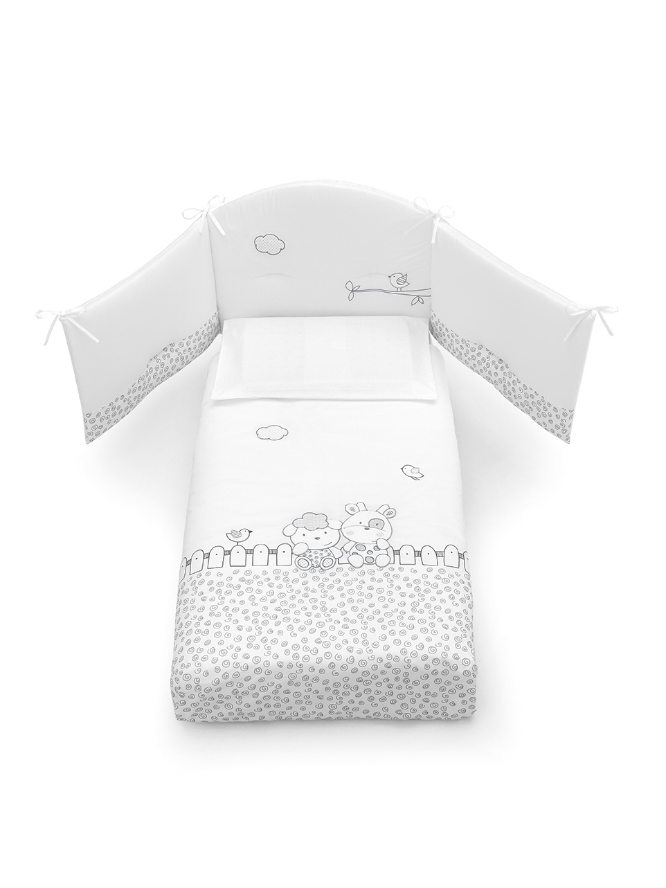 Completo sfilabile ricamato (federina, trapunta con imbottitura estraibile, paracolpi)