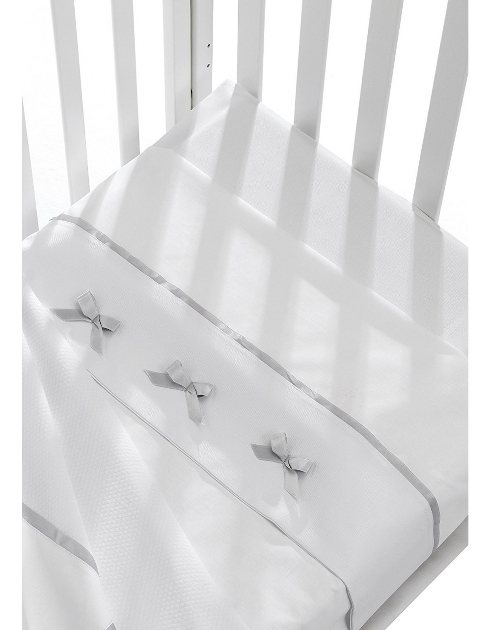 Ideale abbinato al lettino Collezione Dudù con fiocco bianco e grigio oppure bianco e tortora.