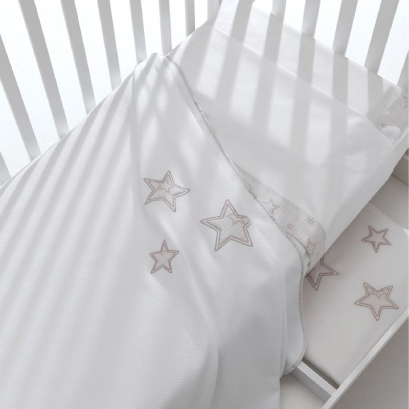 Il set lenzuolo 3 pezzi per i lettini Star e Moon è disponibile in due raffinati colori: Bianco e Tortora.
