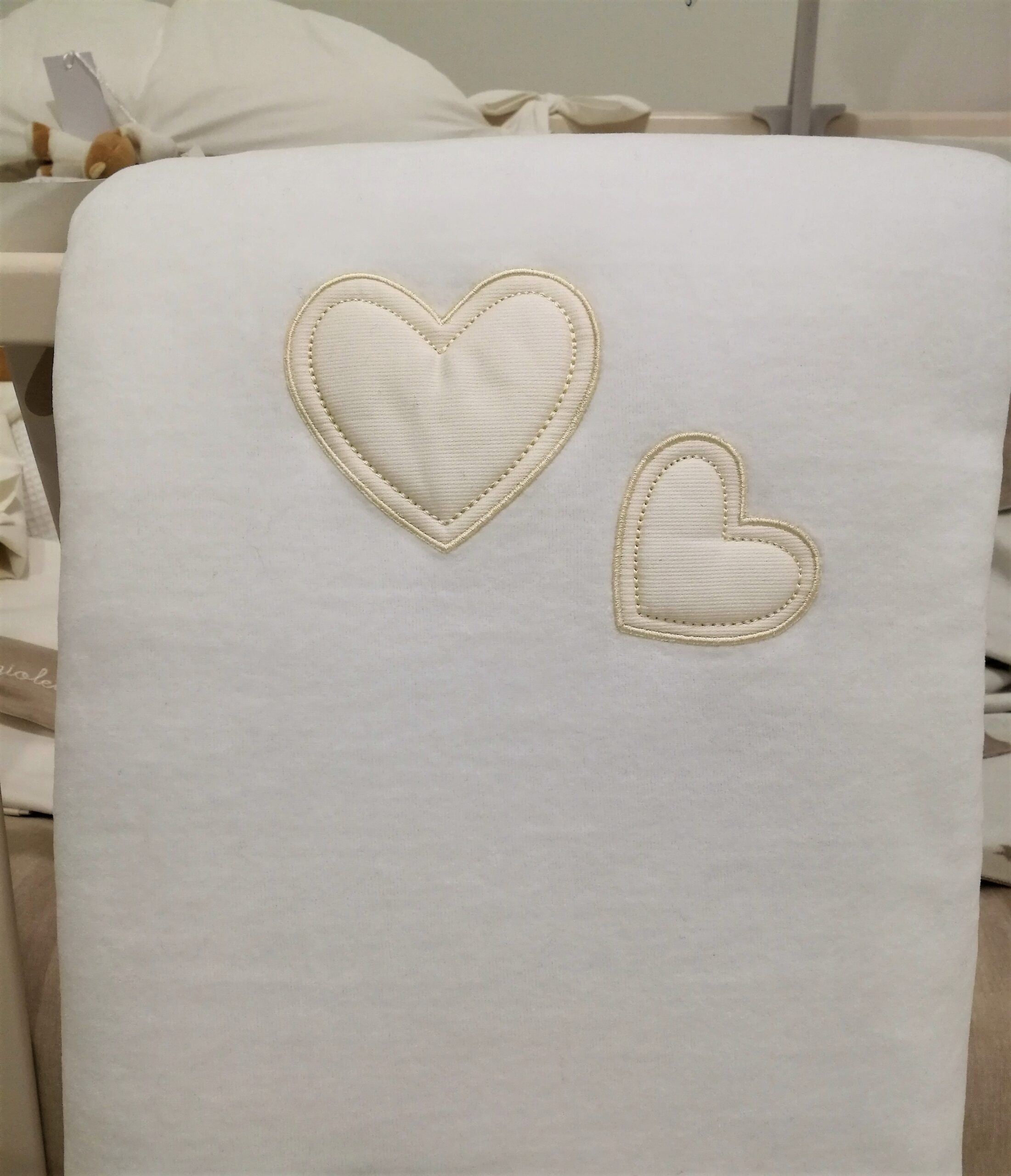 Copertina imbottita in ciniglia con ricamo cuori per culla/carrozzina (70x80cm)