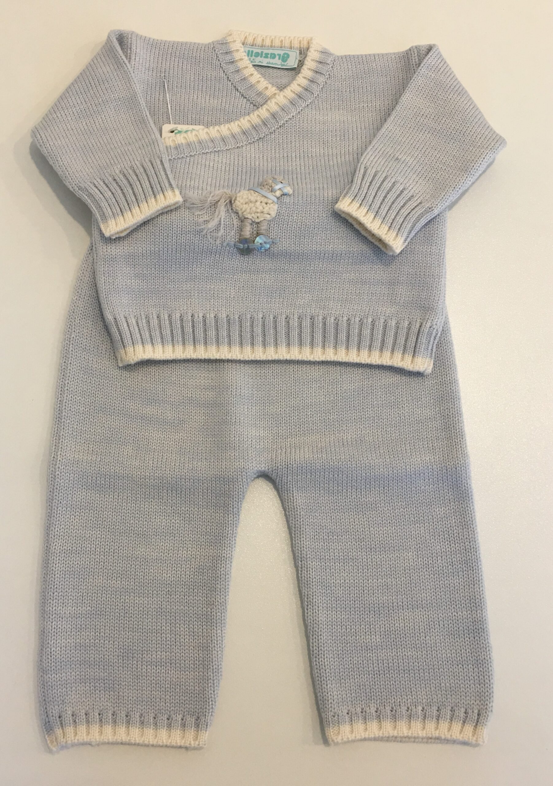 GRAZIELLA Completo lana bambino panna-azzurro corredino neonato