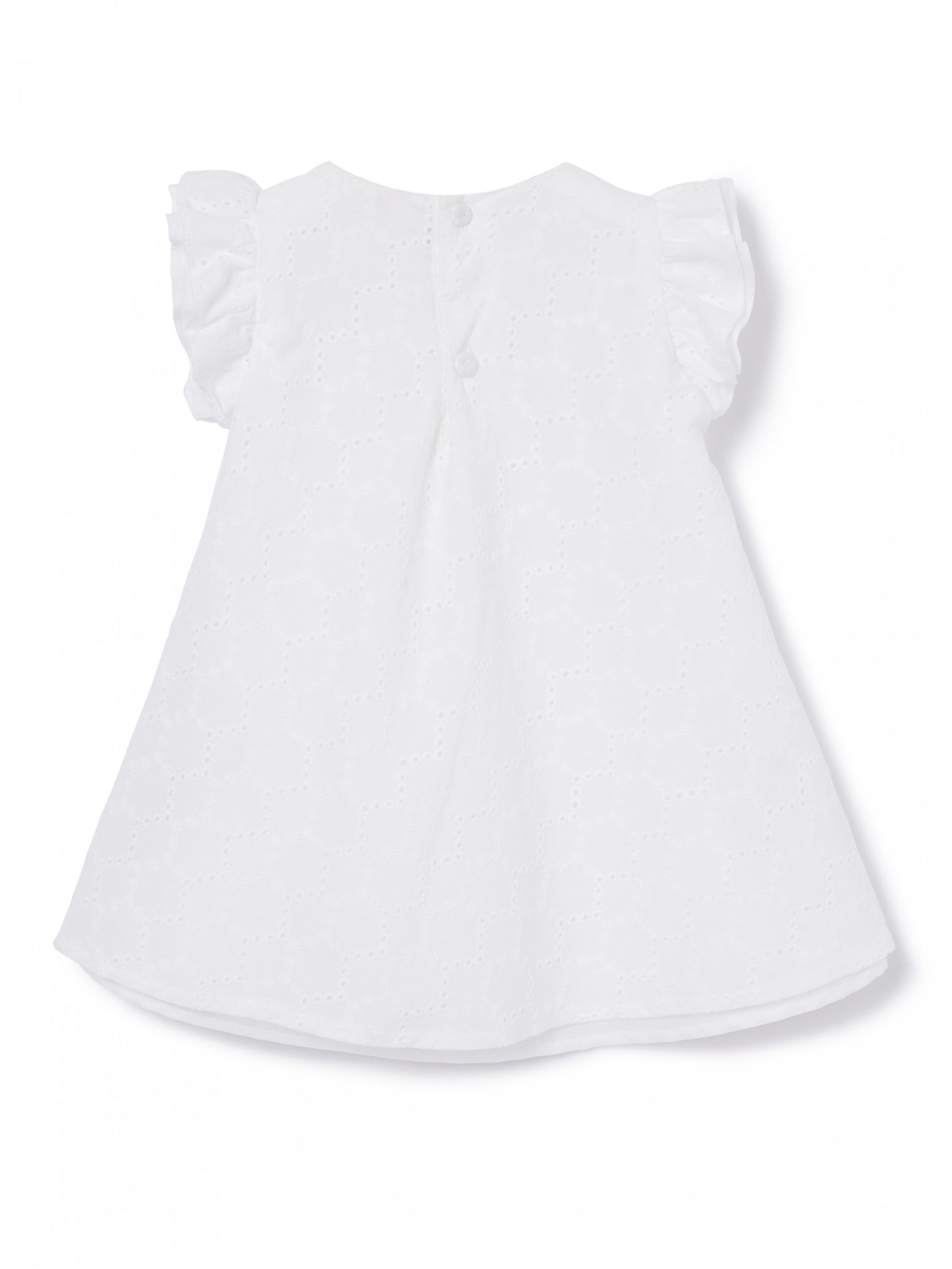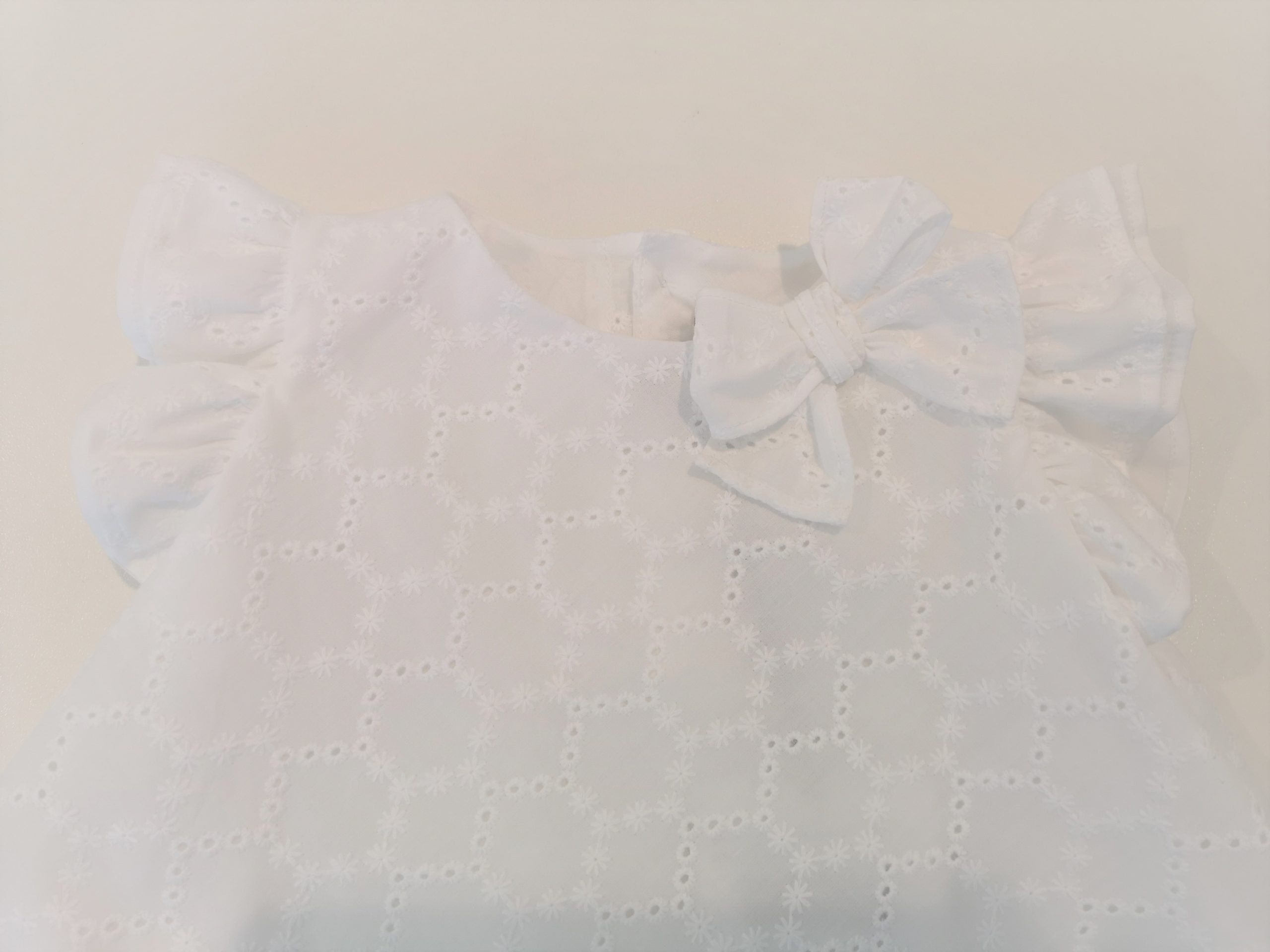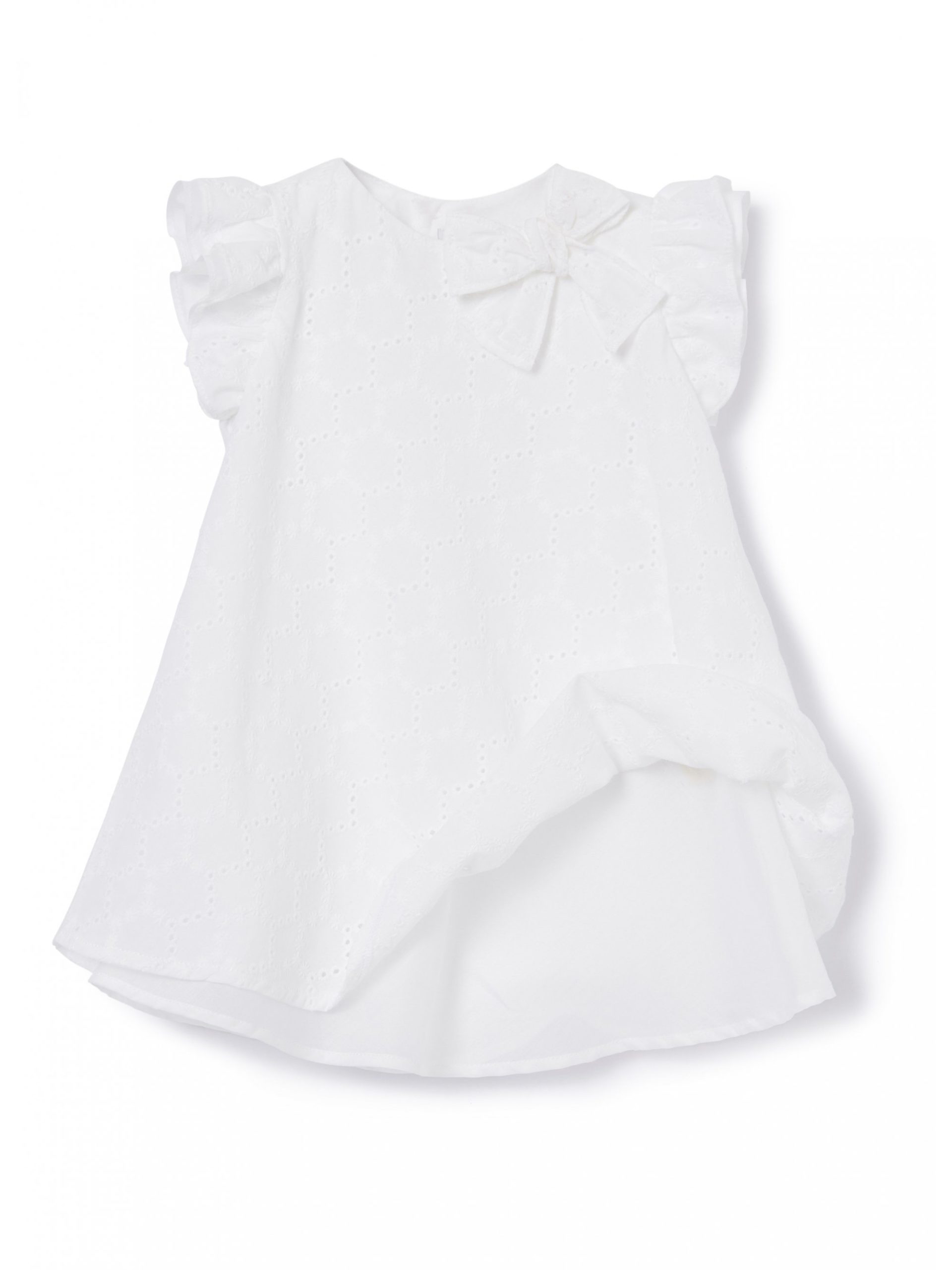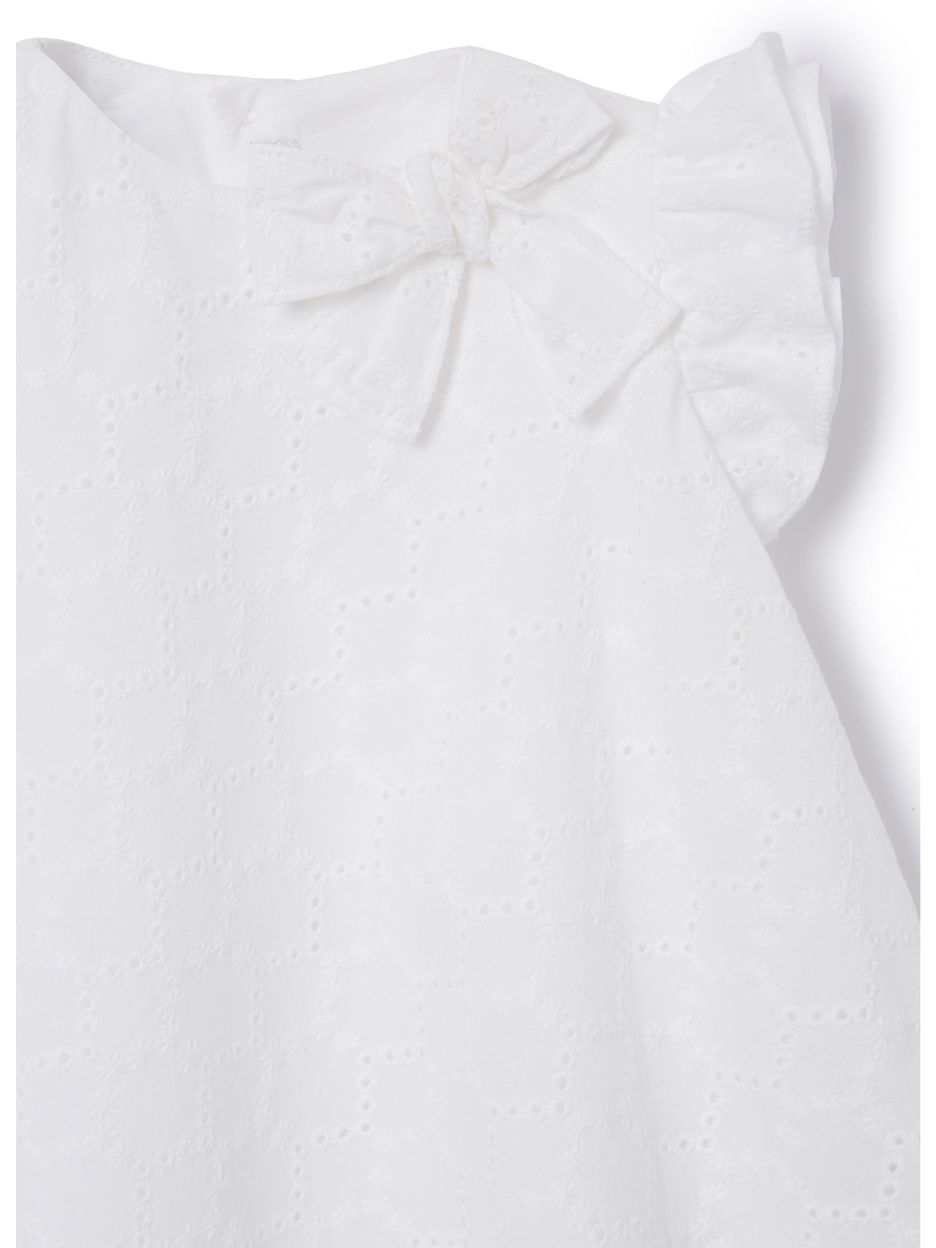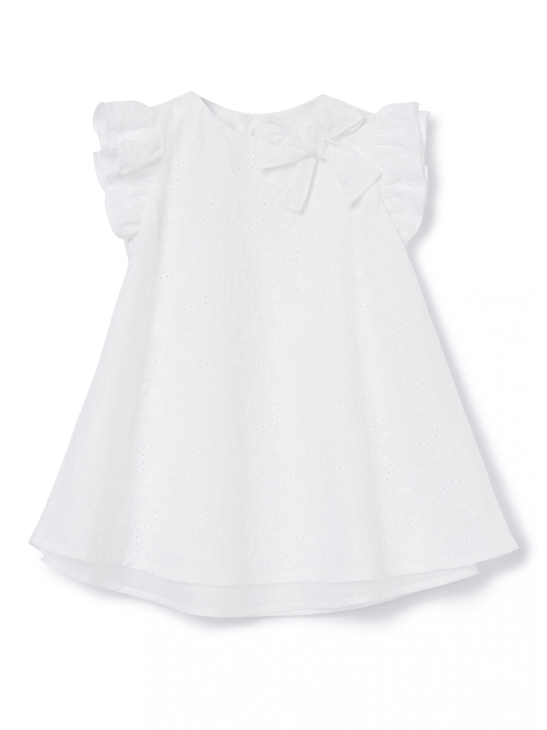 IL GUFO Abito bianco sangallo con fiocco bambina