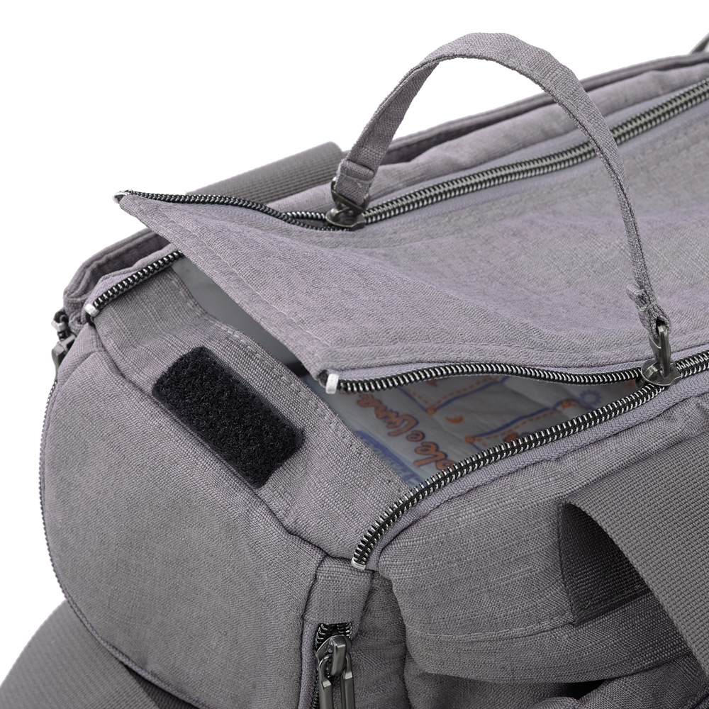 Una comoda e grande borsa fasciatoio scomponibile e multifunzionale, con ampi scompartimenti per avere tutto il necessario per mamma e bambino a portata di mano. Accessoriata con una comoda pochette “Clutch” staccabile, ideale per brevi spostamenti.
