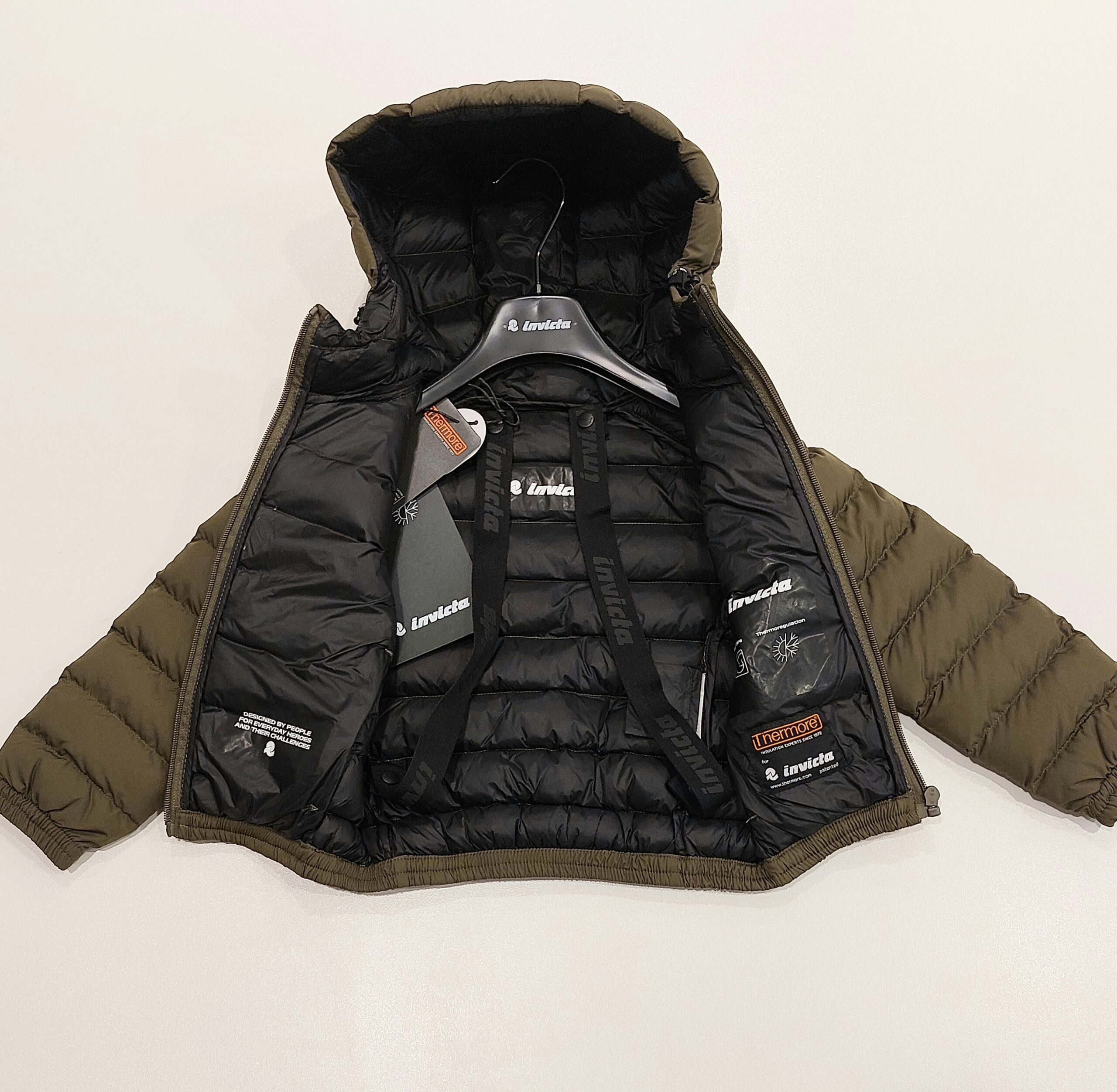 Giubbino INVICTA con cappuccio in tessuto nylon. Chiusura con lampo davanti.
