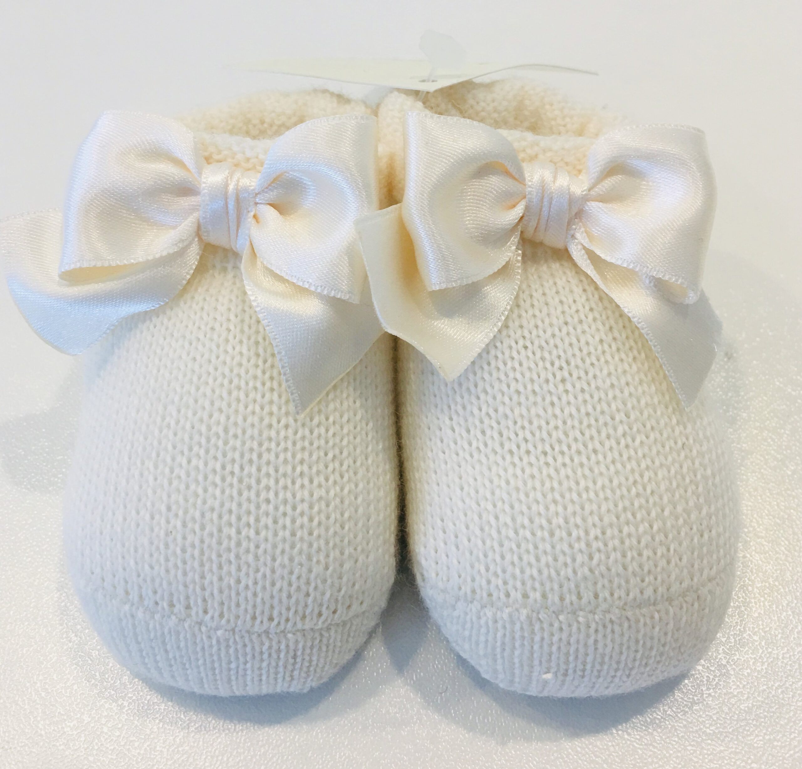 Scarpina in lana LA PERLA, colore panna con fiocco in raso.