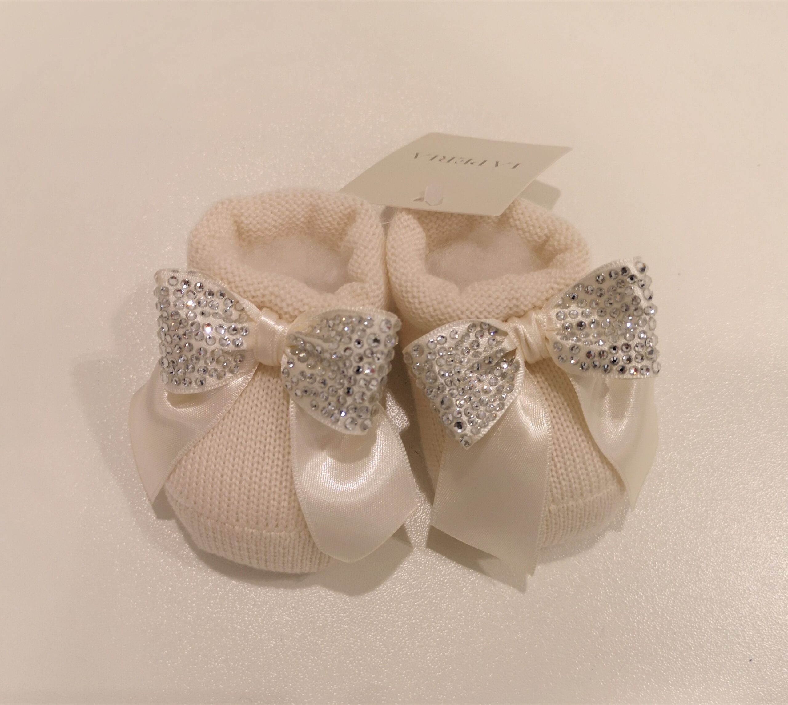 LA PERLA Scarpette panna con fiocco e strass corredino neonata