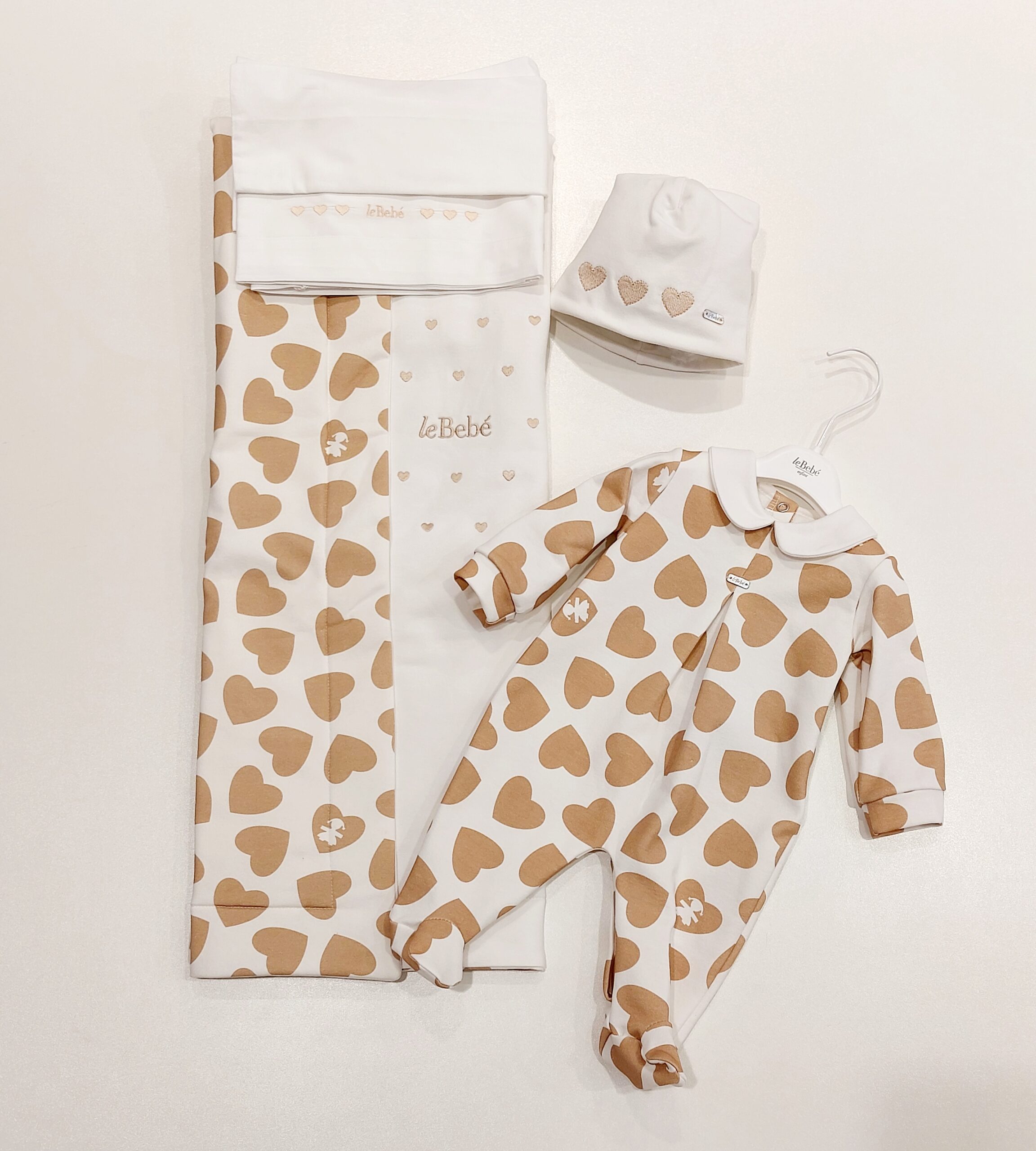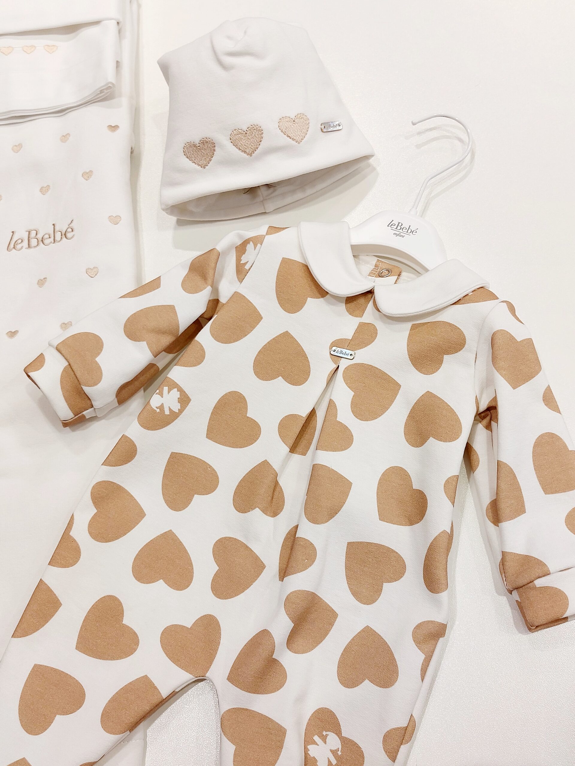 LE BEBE’ Coordinato con tutina stampa cuori corredino nascita neonata