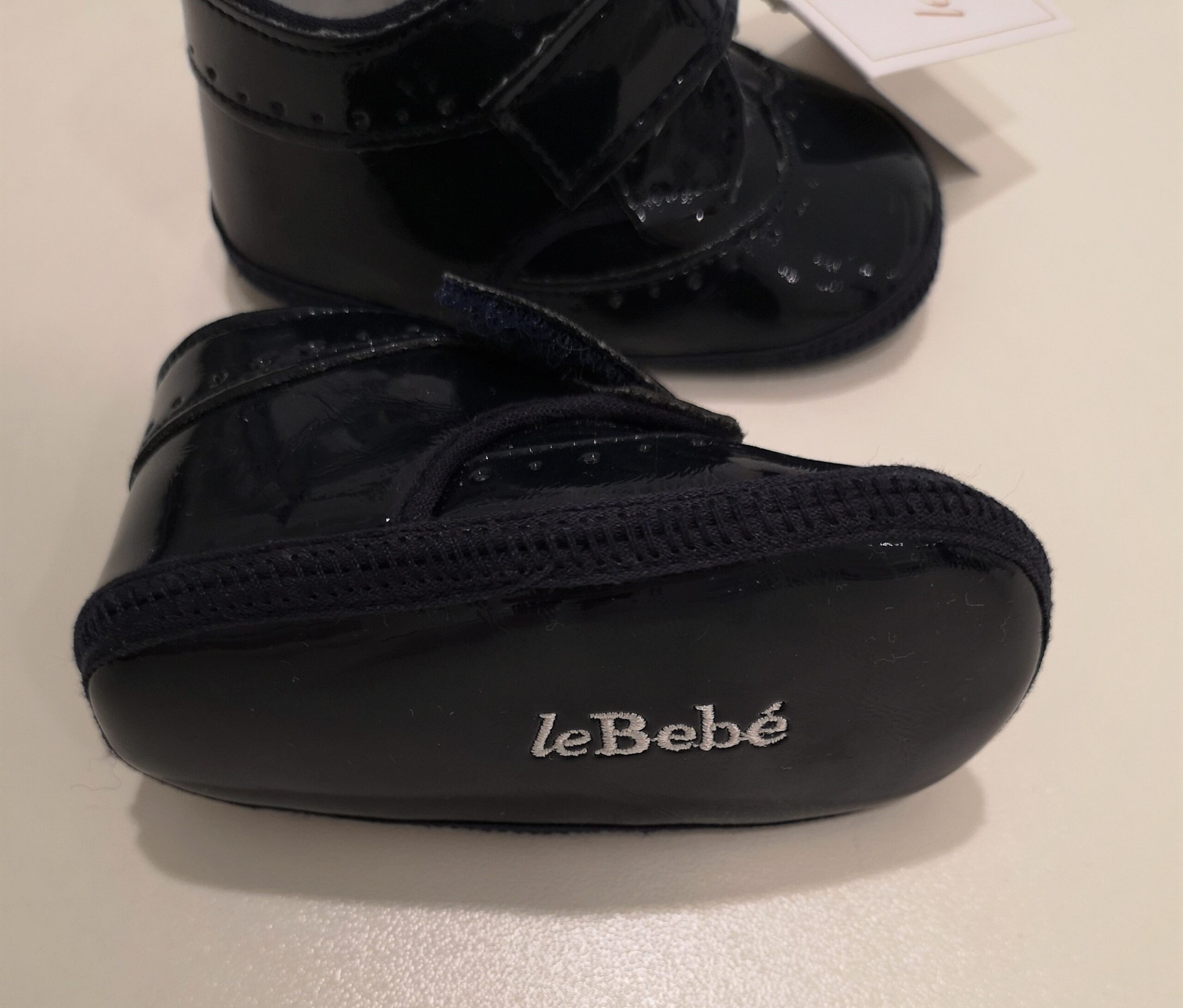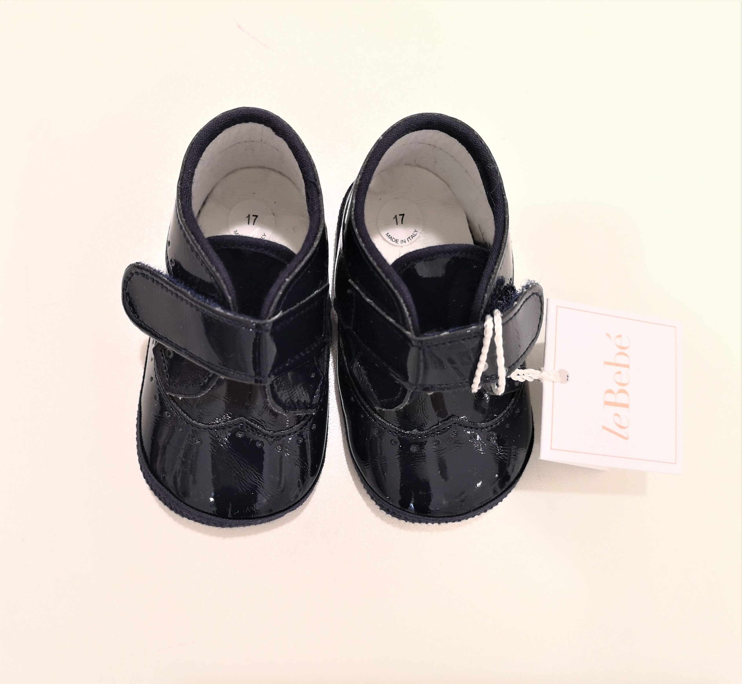 LE BEBE’ Scarpette inglesina vernice blu con velcro neonato