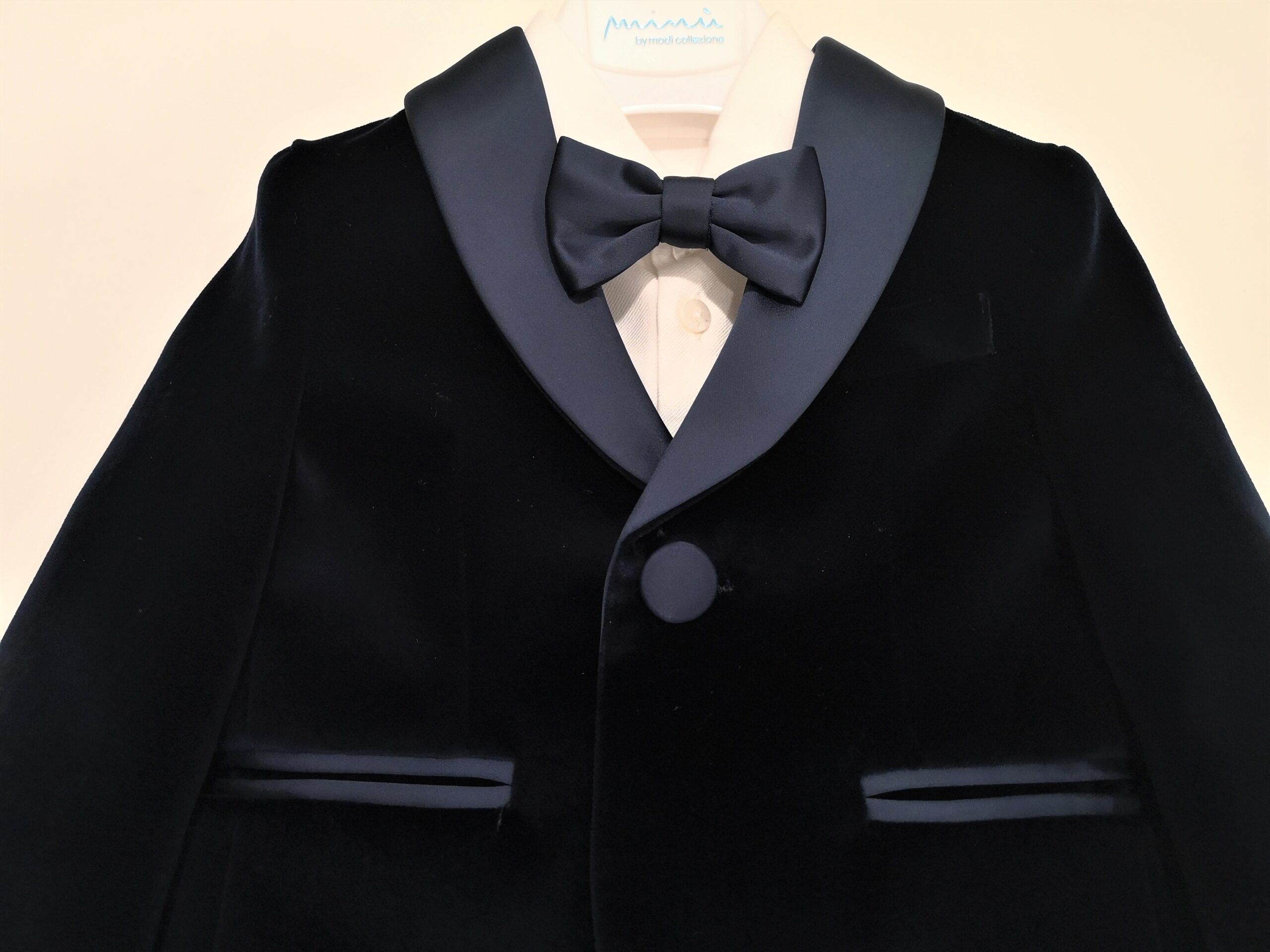 MODI’ Completo blu in velluto battesimo bambino