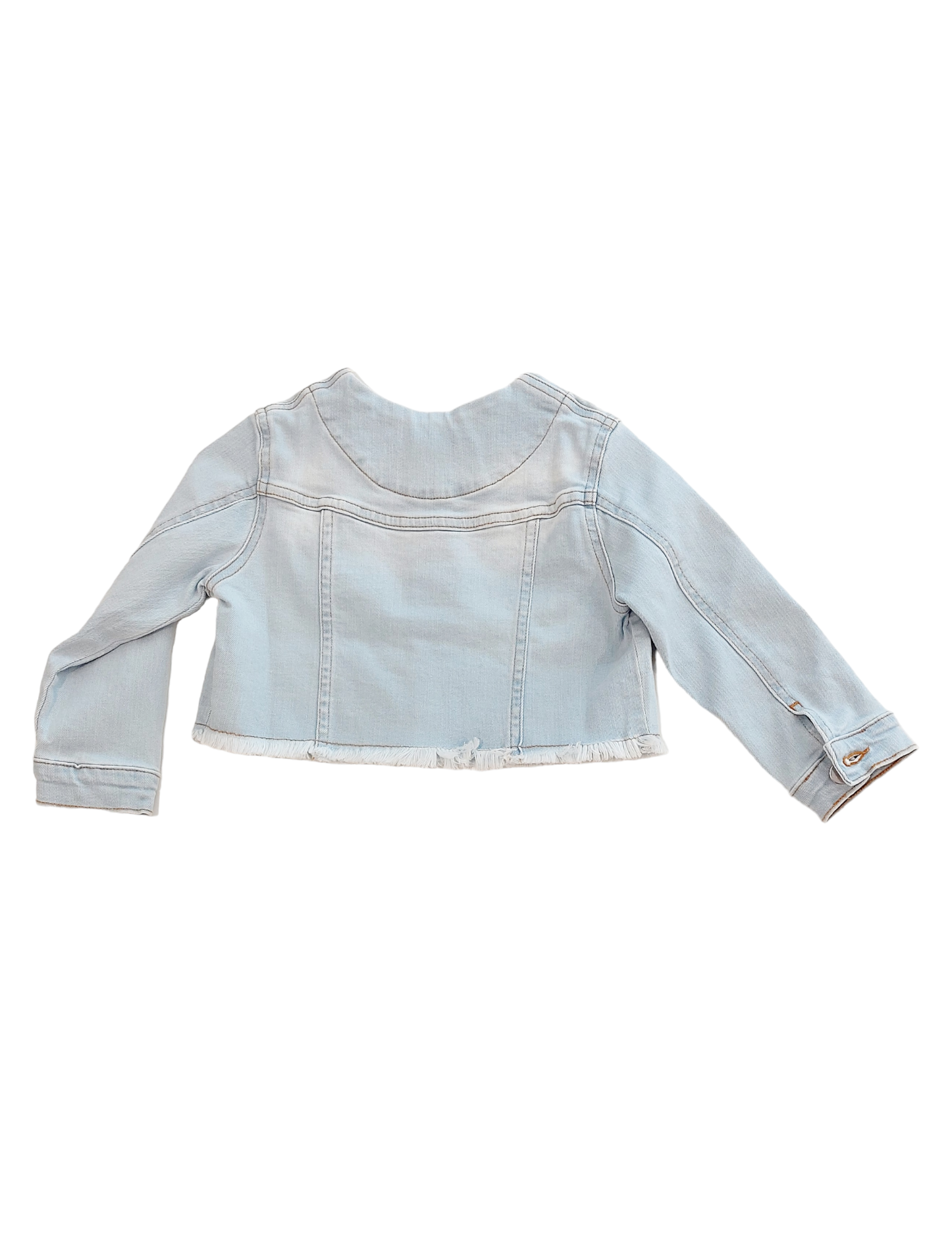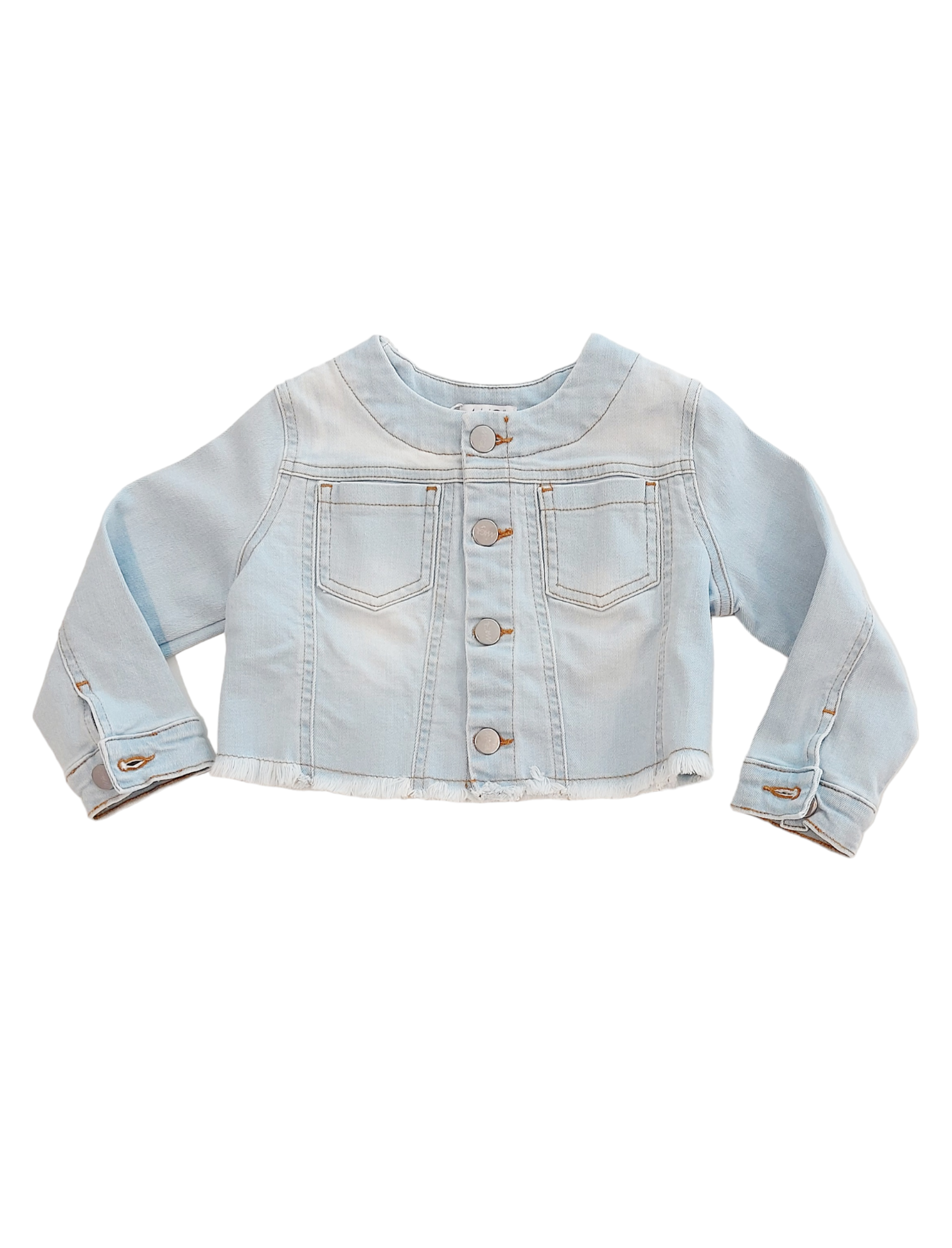 Giubbino in jeans azzurro delavé con bordo inferiore sfrangiato