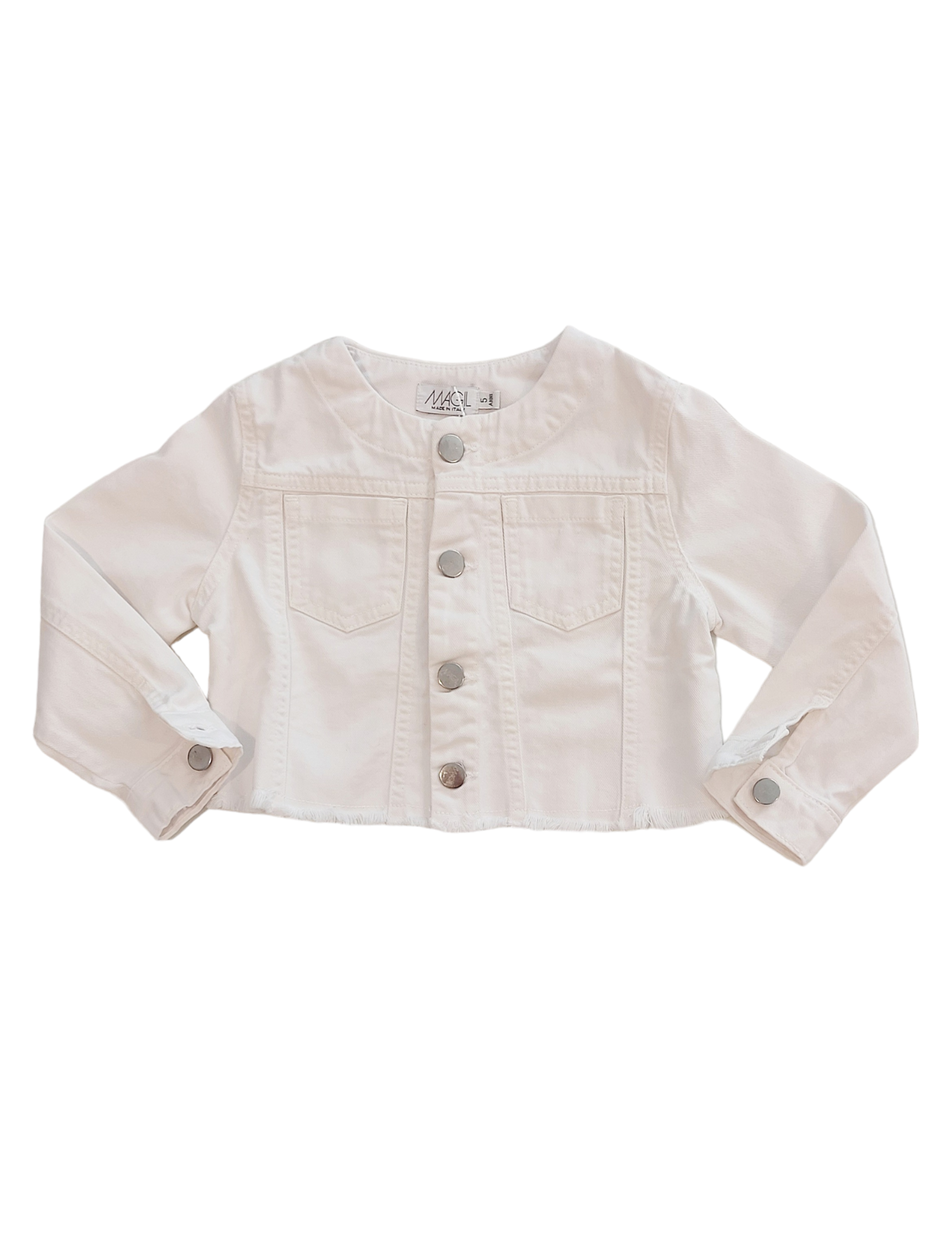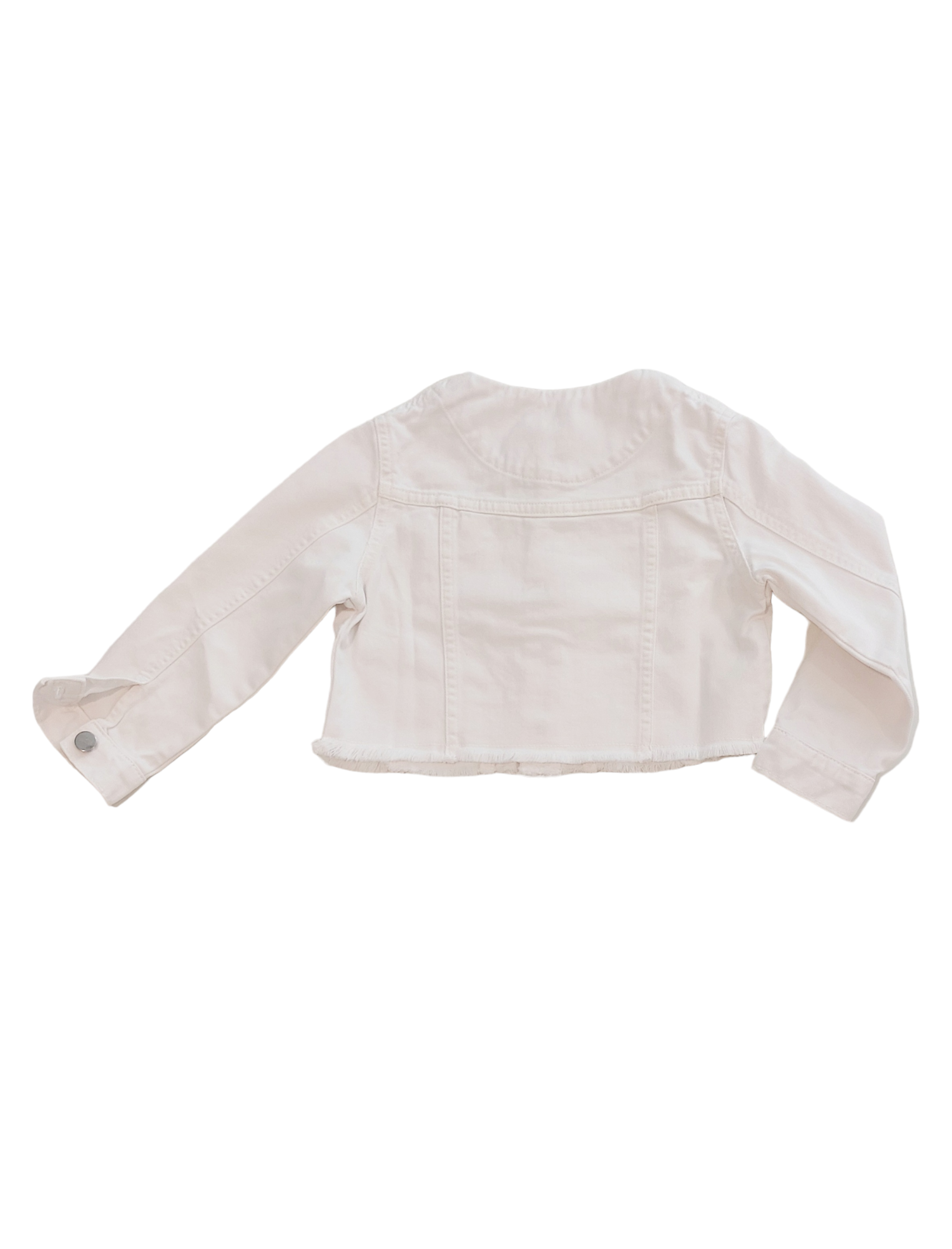 Giubbino in jeans bianco con bordo inferiore sfrangiato