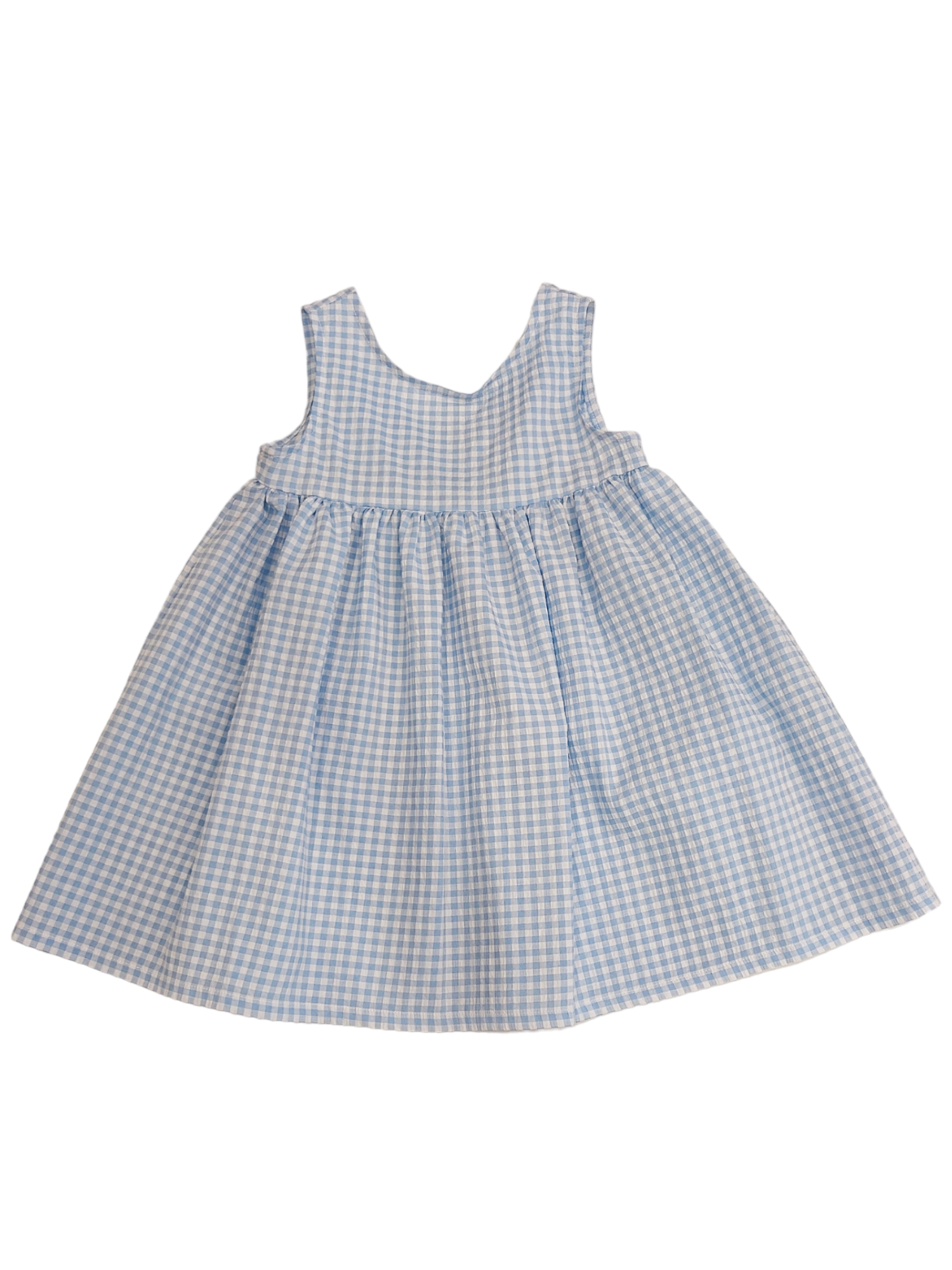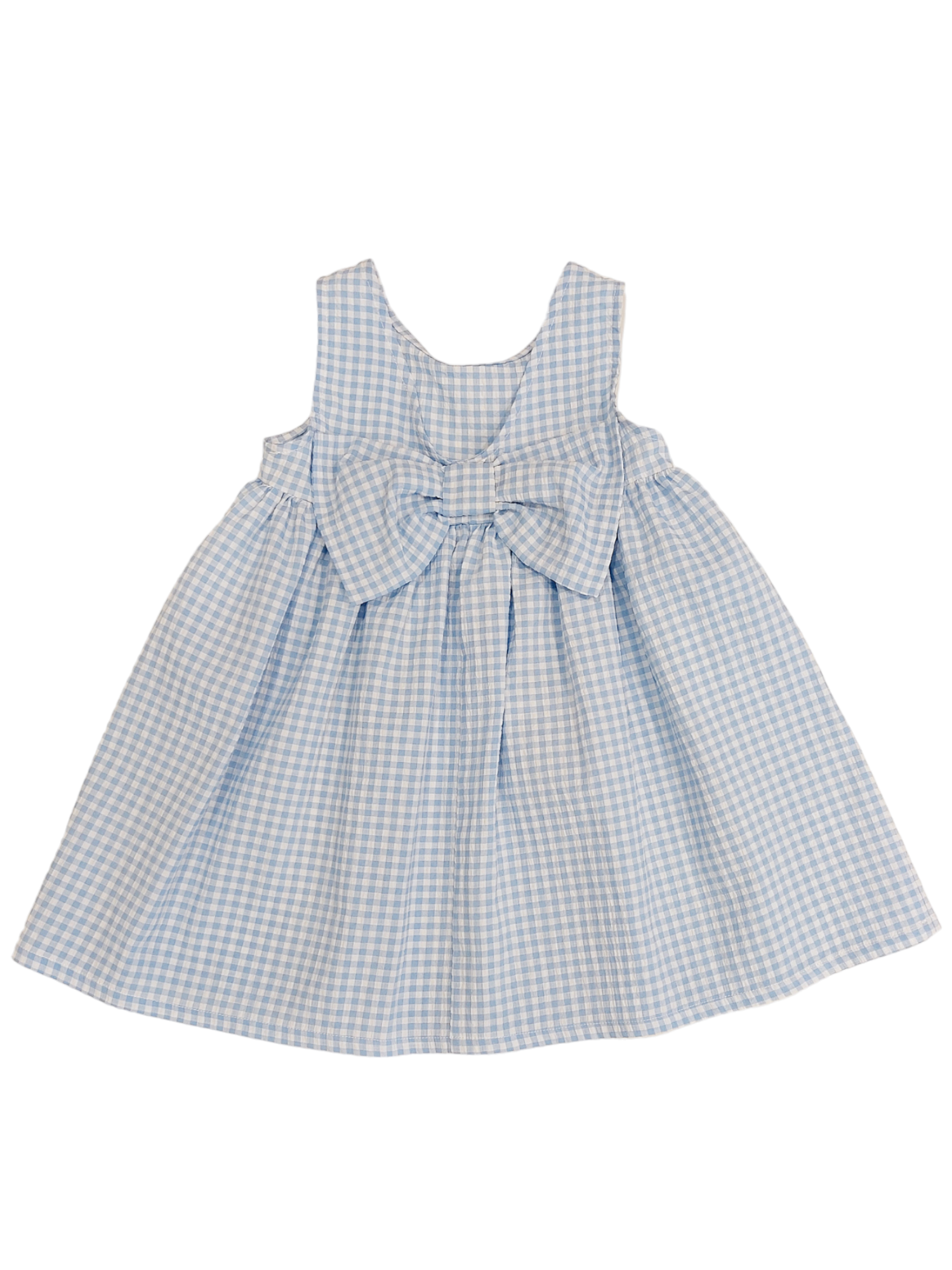 Fresco vestitino smanicato in tessuto quadretti vichy azzurro