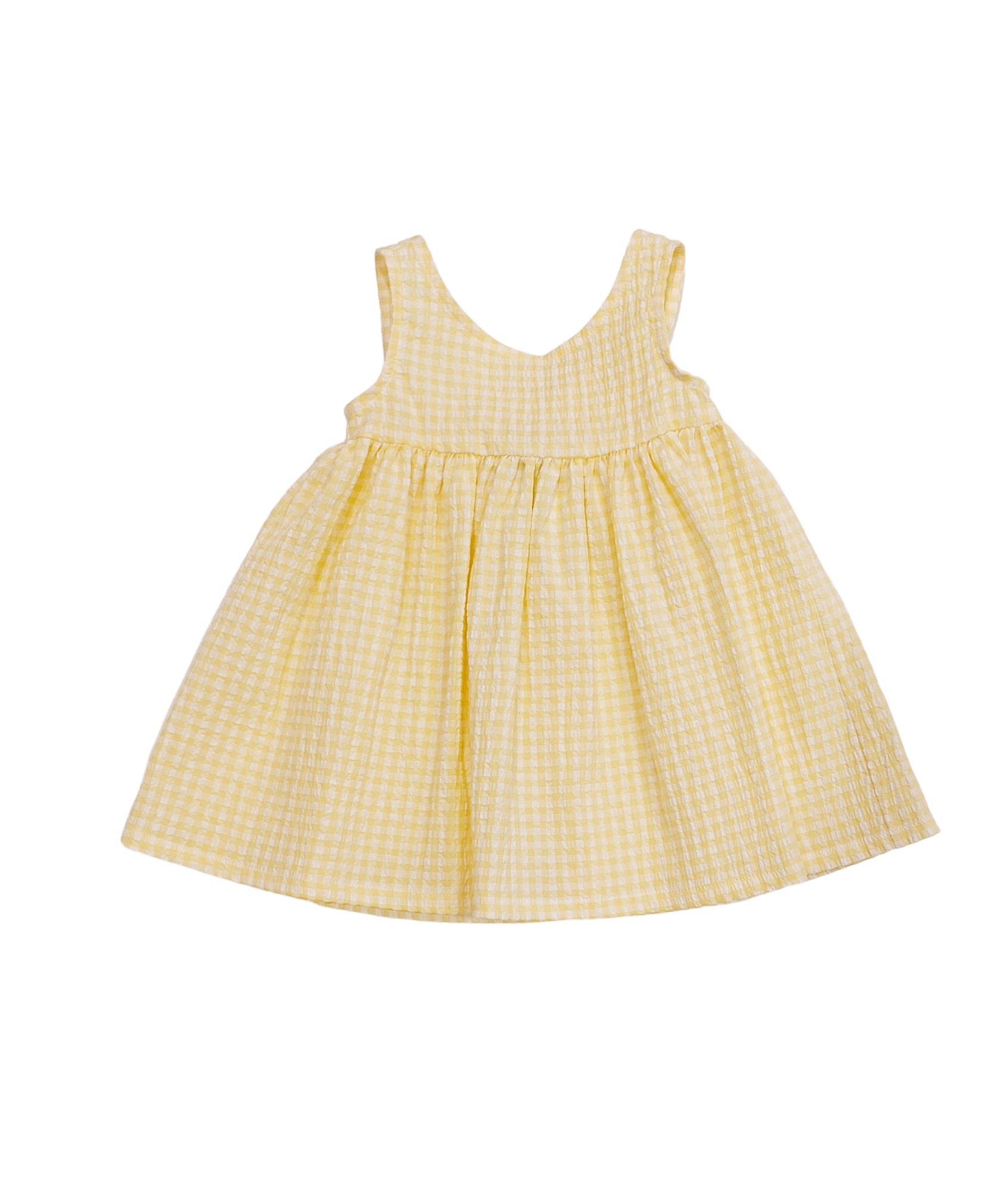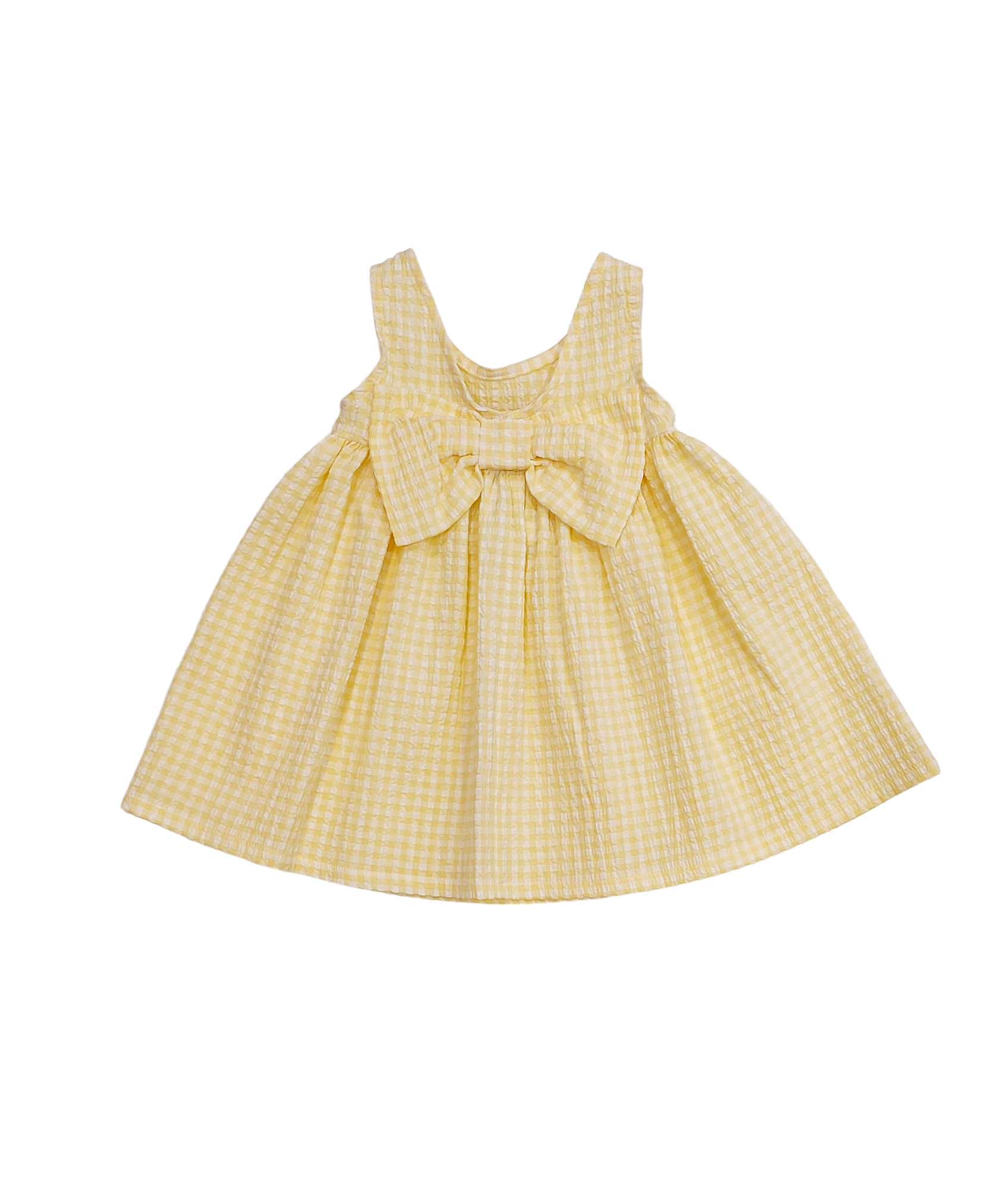 Fresco vestitino smanicato in tessuto quadretti vichy giallo