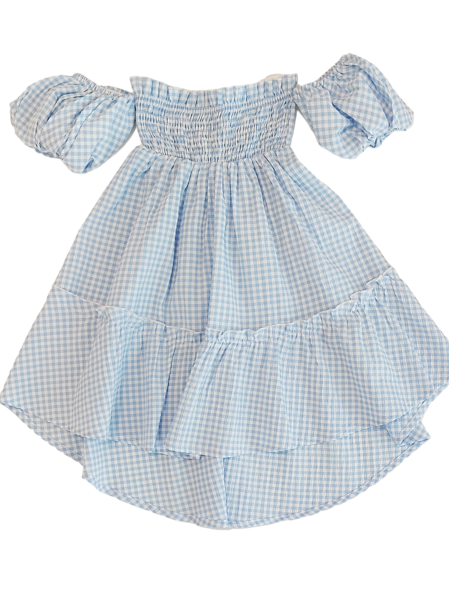 Fresco vestitino scollato in tessuto quadretti vichy azzurro