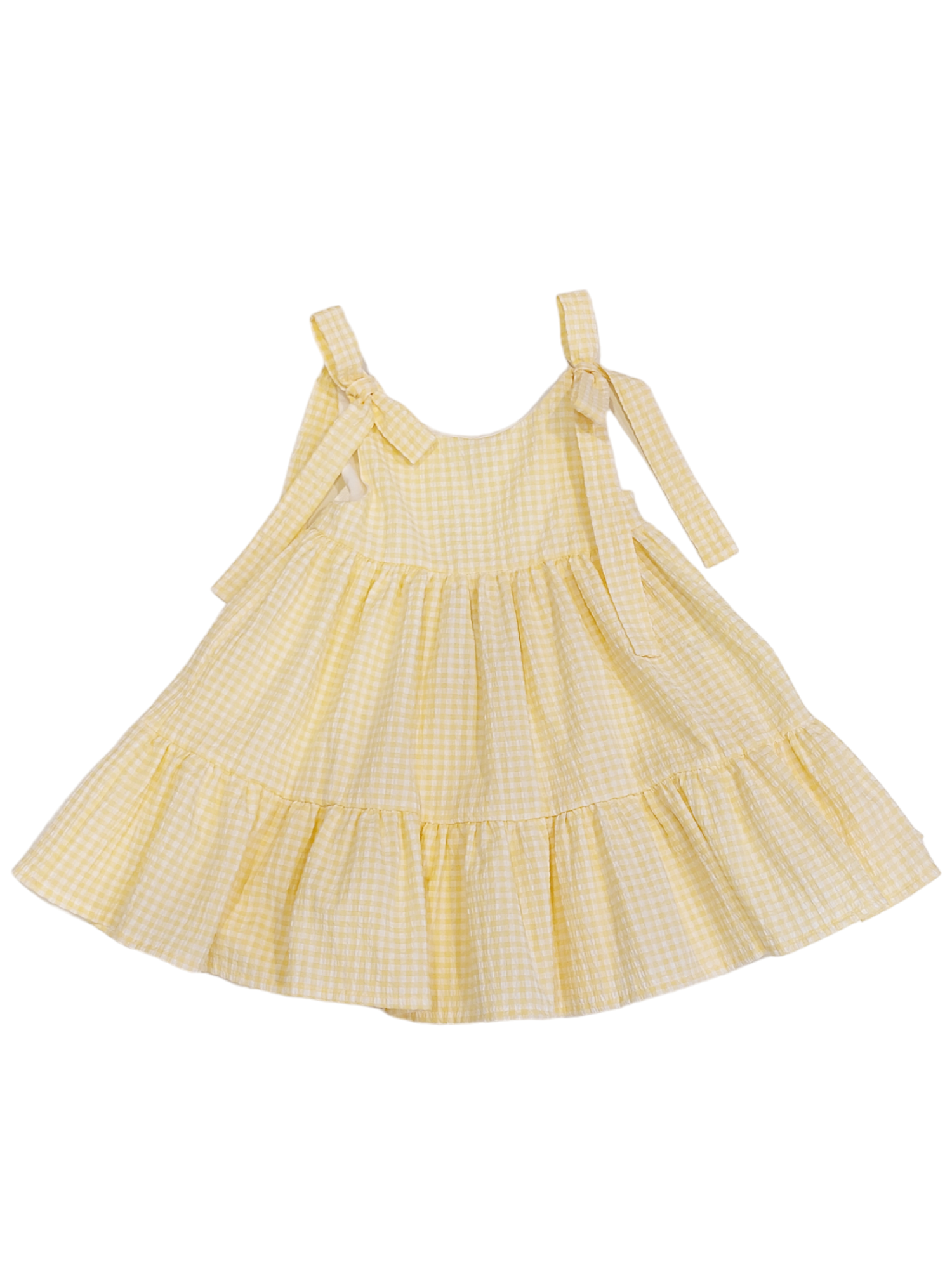 Fresco vestitino con bretelle in tessuto quadretti vichy giallo