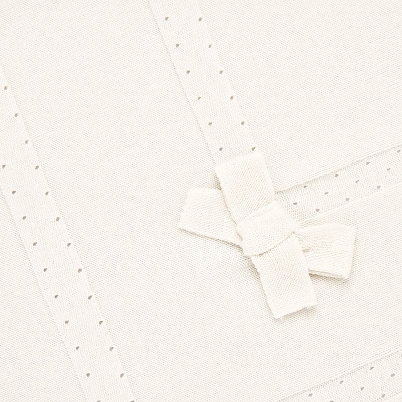 Copertina neonato dal design avvolgente che dona comodità e confort al tuo piccolo/a durante i suoi riposini. Tessuto in tricot morbido al tatto. Elementi decorativi: dettagli traforati.