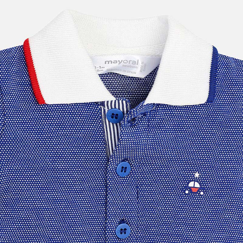 Polo manica corta con dettagli a contrasto per neonato. Colletto polo classico. Chiusura con bottoni nel colletto che facilita la vestibilità del capo. Tessuto 100% cotone. Design stampato.