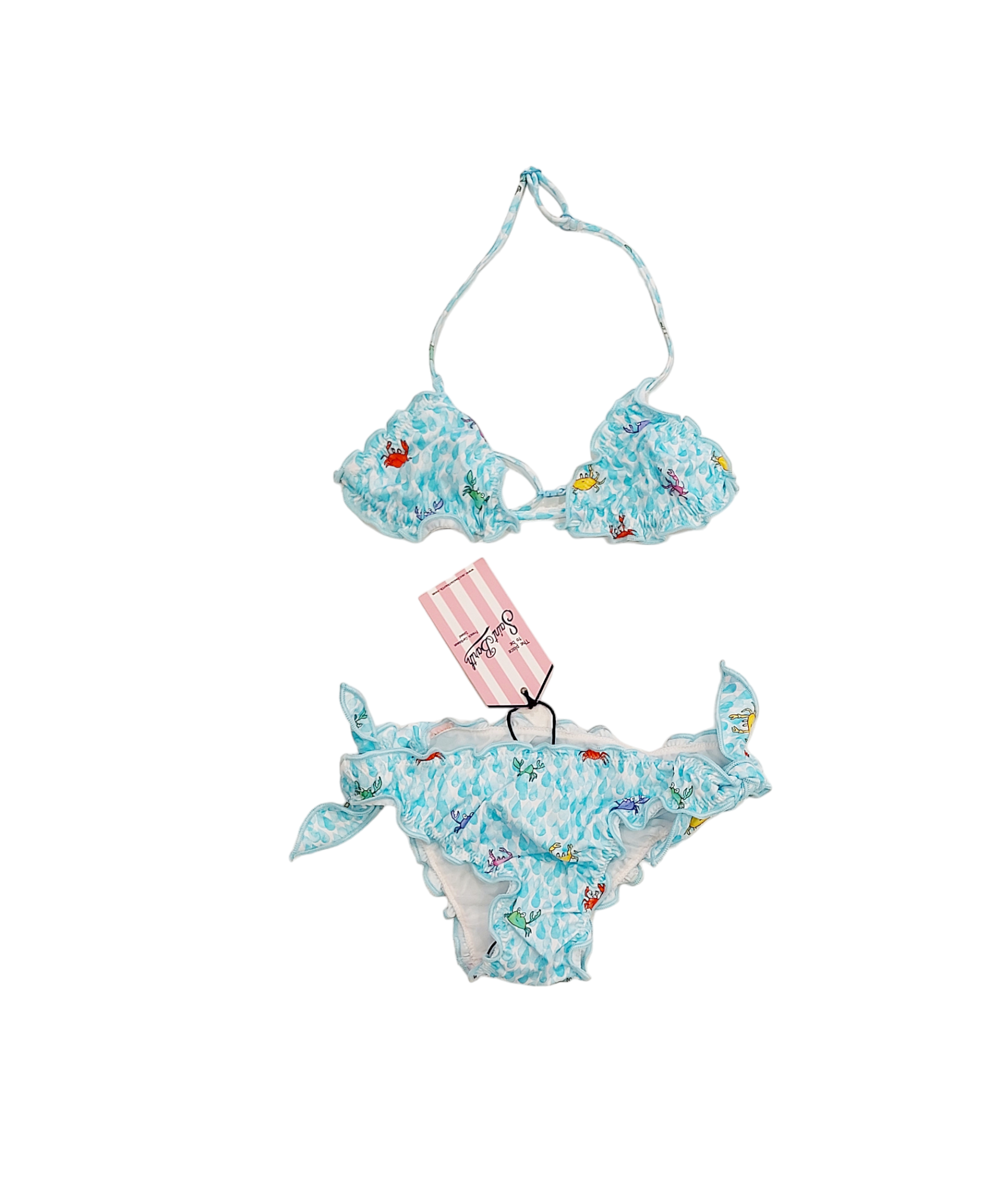 Bikini stampa all over granchietti su fondo azzurro acqua