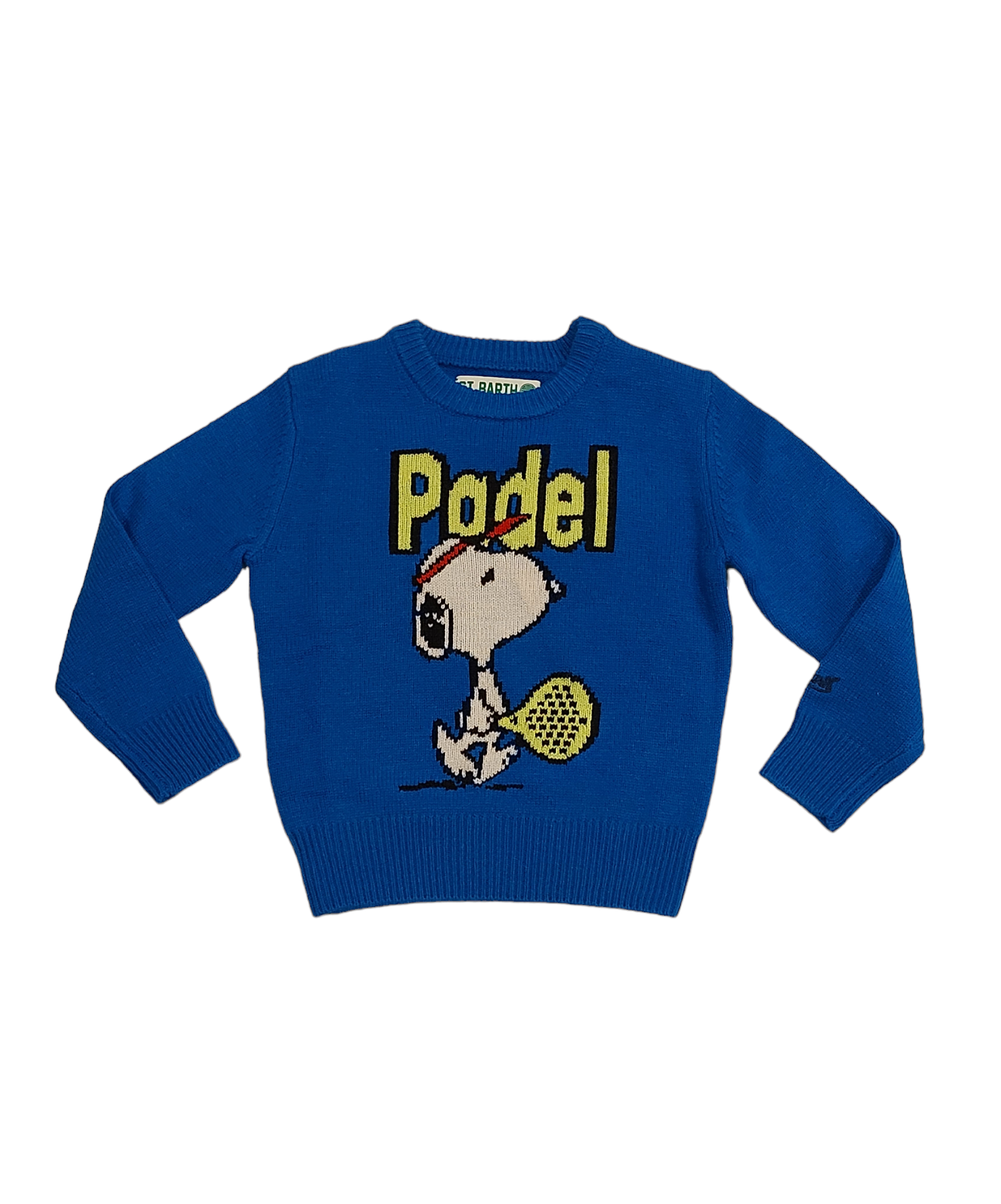 Maglione fondo bluette con Snoopy e scritta PADEL