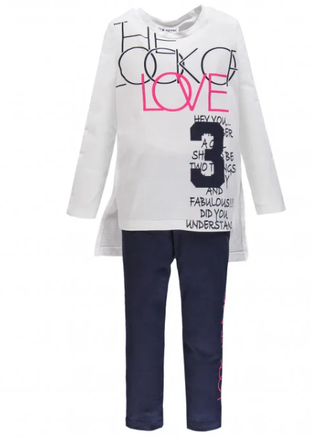 MEK Completo t-shirt bianca + leggings blu bambina